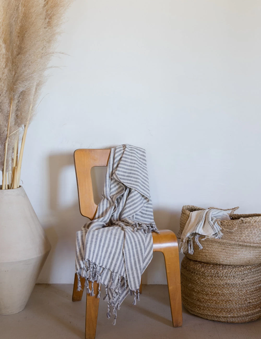 Hand-loomed from all-natural Turkish cotton, this towel is super soft, durable, and ultra lightweight. Featuring a classic striped pattern and tasseled ends, this oversized towel is a refined accent that can be used in your bath or poolside.
