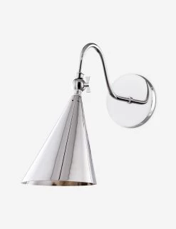 Laurent brings a stylish edge to task lighting with its gooseneck design and skewed cone shade forming a dramatic silhouette. The swivel key allows you to adjust the sconce, offering the perfect touch for a reading nook, bedside, or home office. We love this wall sconce for creating directional light with no footprint.