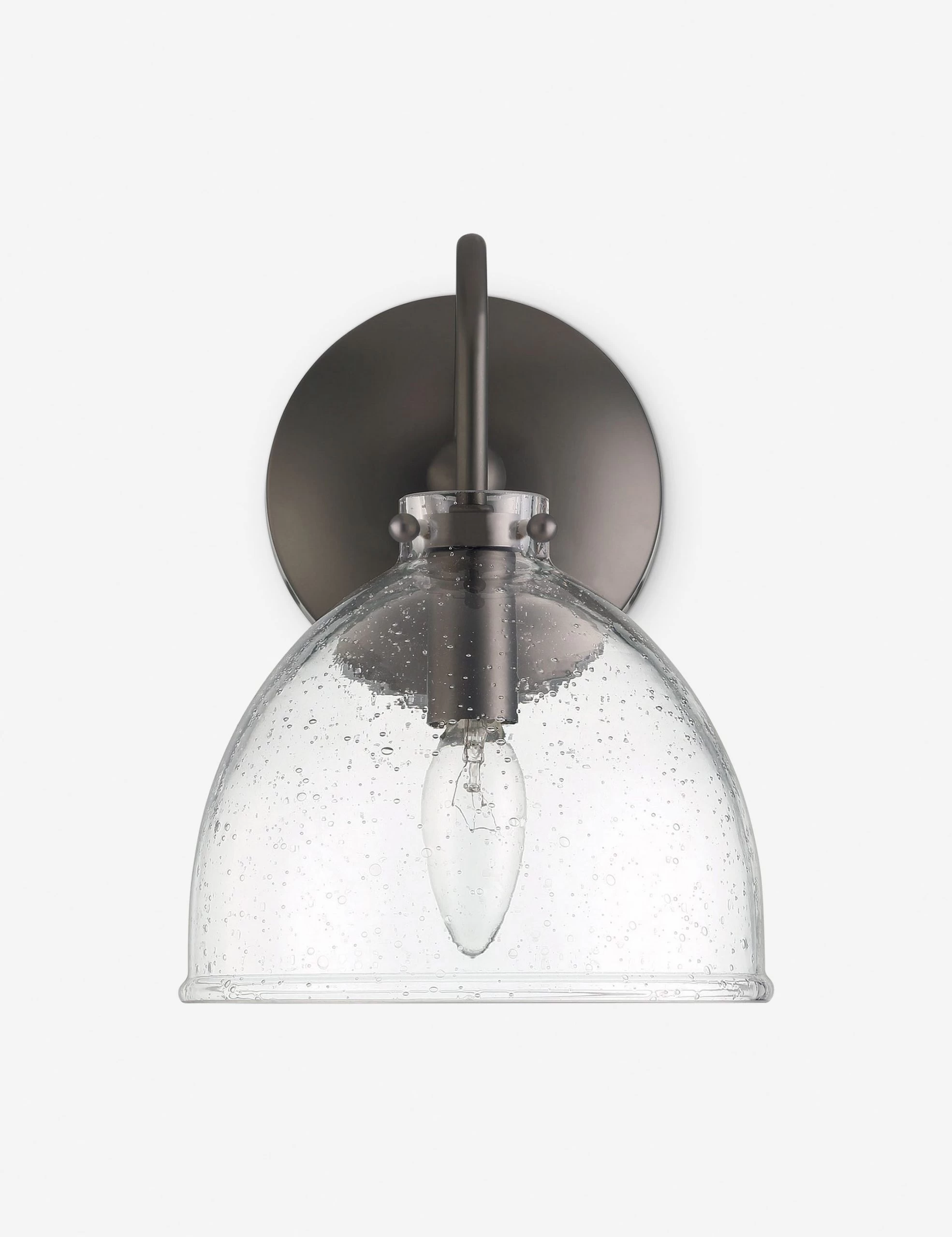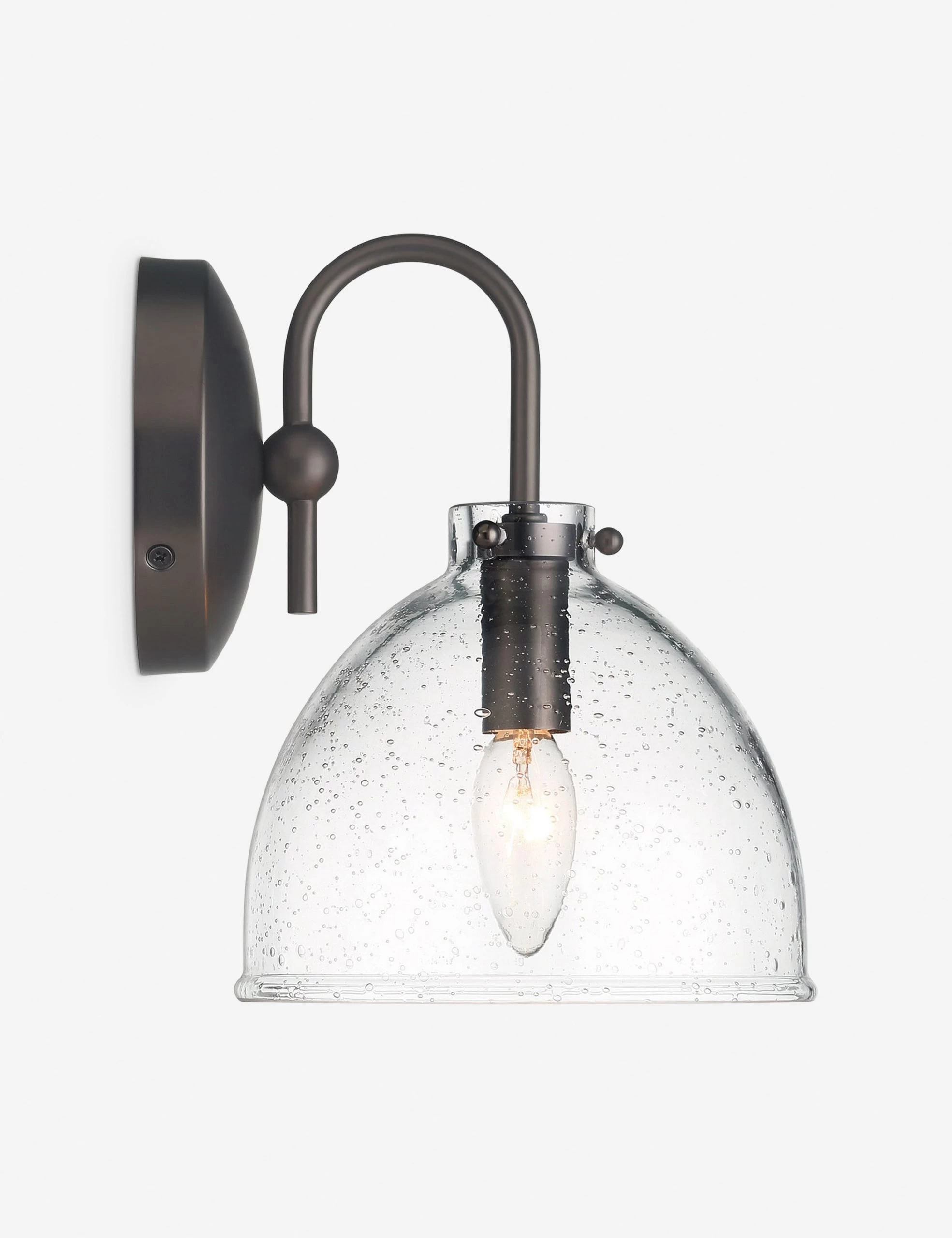 Adding some polish to your lighting design? The Lawrence sconce pairs a seeded glass dome with a gooseneck arm that exudes sophistication in a lustrous finish. This sconce can serve as a subtle statement piece or be styled in pairs over your vanity or bedside for a refining touch.