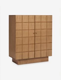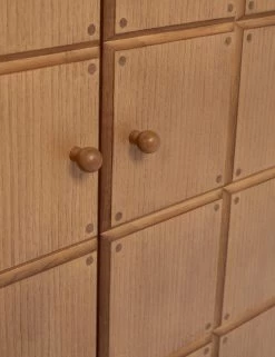 The Lee dresser offers visual intrigue and natural grain warmth with its blockwork detailing and fluted plinth base. The name is a nod to Sarah’s dad, who fabricated the custom doors on which the drawer front is based. The tall design features a compact footprint with cabinet doors opening to spacious storage, including three interior drawers. This dresser is from our exclusive Sarah Sherman Samuel collaboration and features all the trademarks of her warm, edited style.