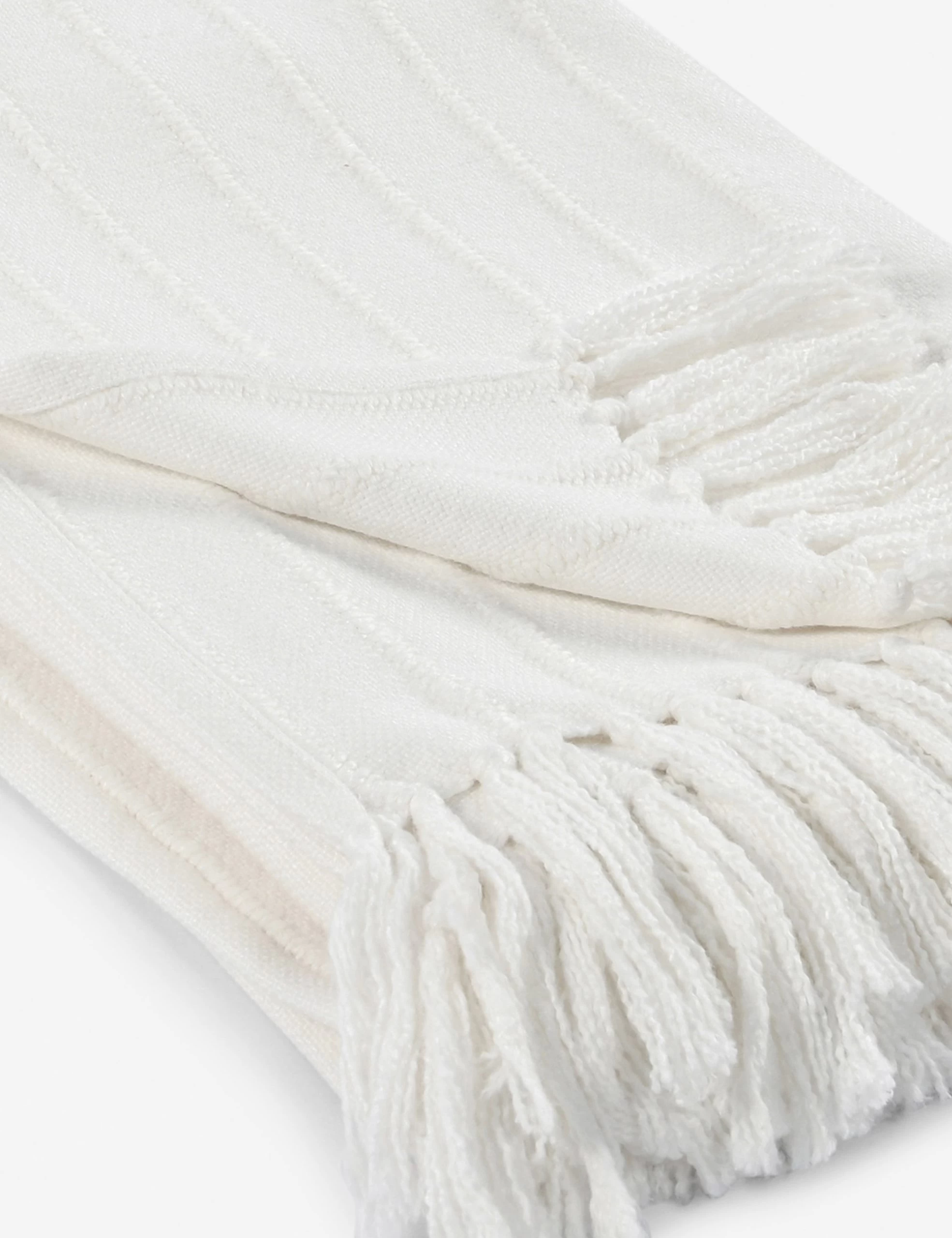 Curl up on your bed or couch with this throw blanket for a day spent catching up on shows or reading in your favorite chair. With its knotted tassels and subtly striped design, this throw is a stylish essential to keep around your home.