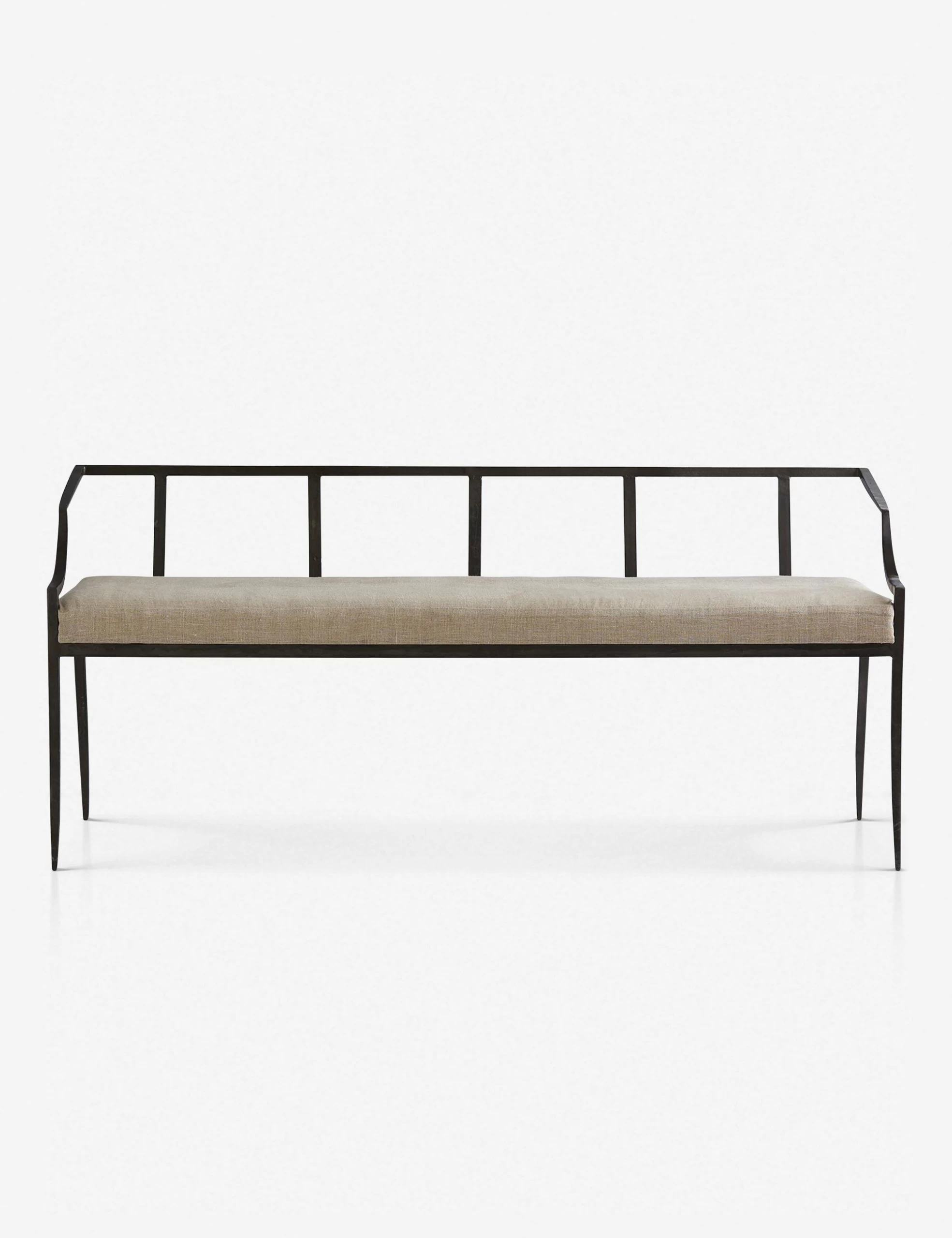 A black metal frame with a low profile and slatted design keeps this transitional bench contemporary and cool, while the natural cushion makes it so easy to style – perfect for your entryway.