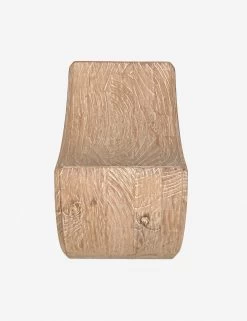 Doubling as extra seating and art, this sculptural bench offers a global appeal thanks to peaked edges and dramatic curves in a distressed Mindi wood finish.