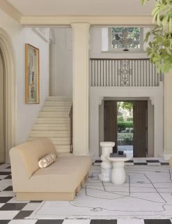 A line-drawn design gives this soft, durable flatweave rug endless style points with functional appeal. Woven from a viscose-wool blend, this abstract rug is softer underfoot than a traditional flatweave. Anchor an artfully curated living room or bedroom with this dynamic rug to strike an inviting, laid-back feel. This floor rug is from our exclusive Sarah Sherman Samuel collaboration and features all the trademarks of her warm, edited style.