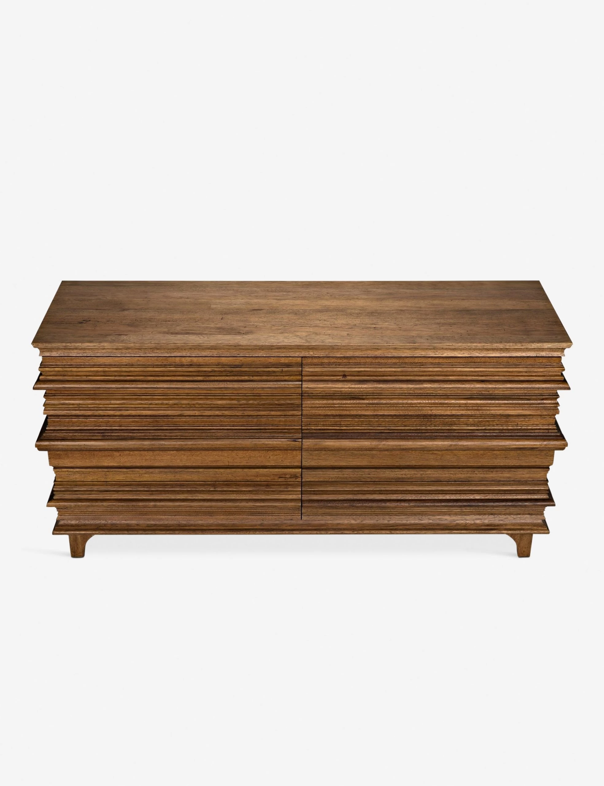 Style points abound with this intricately designed dresser, ideal for the adventurous modern bedroom. We’re especially in love with the stacked beveling on the drawers and the warm, rich tones of the wood.