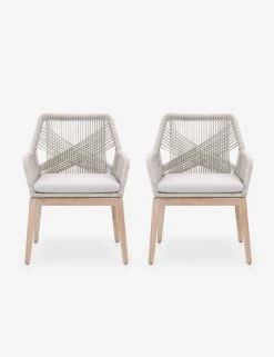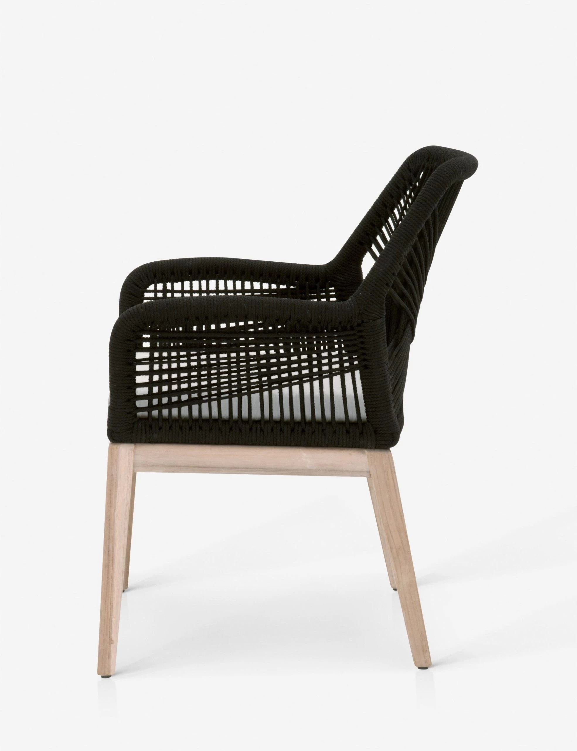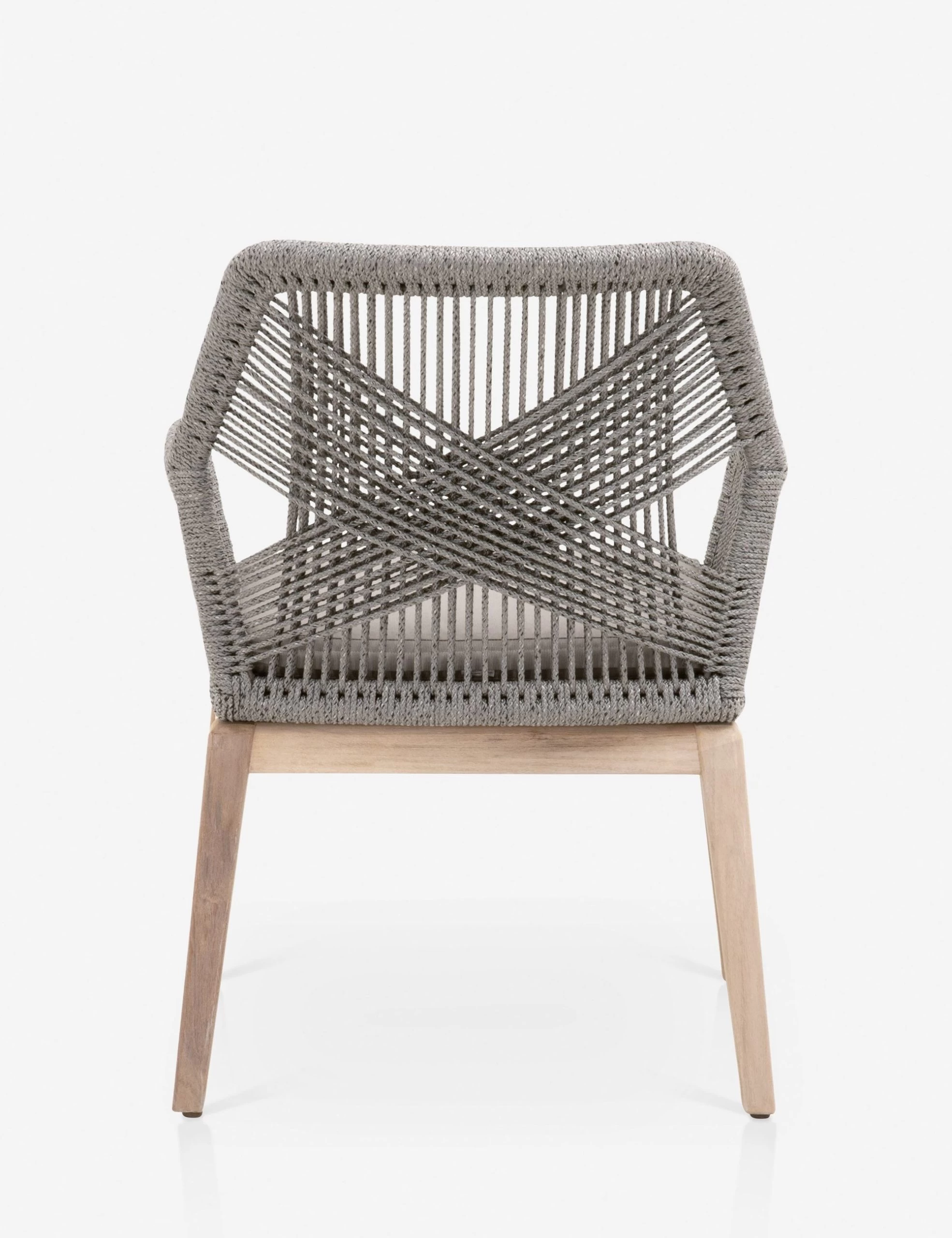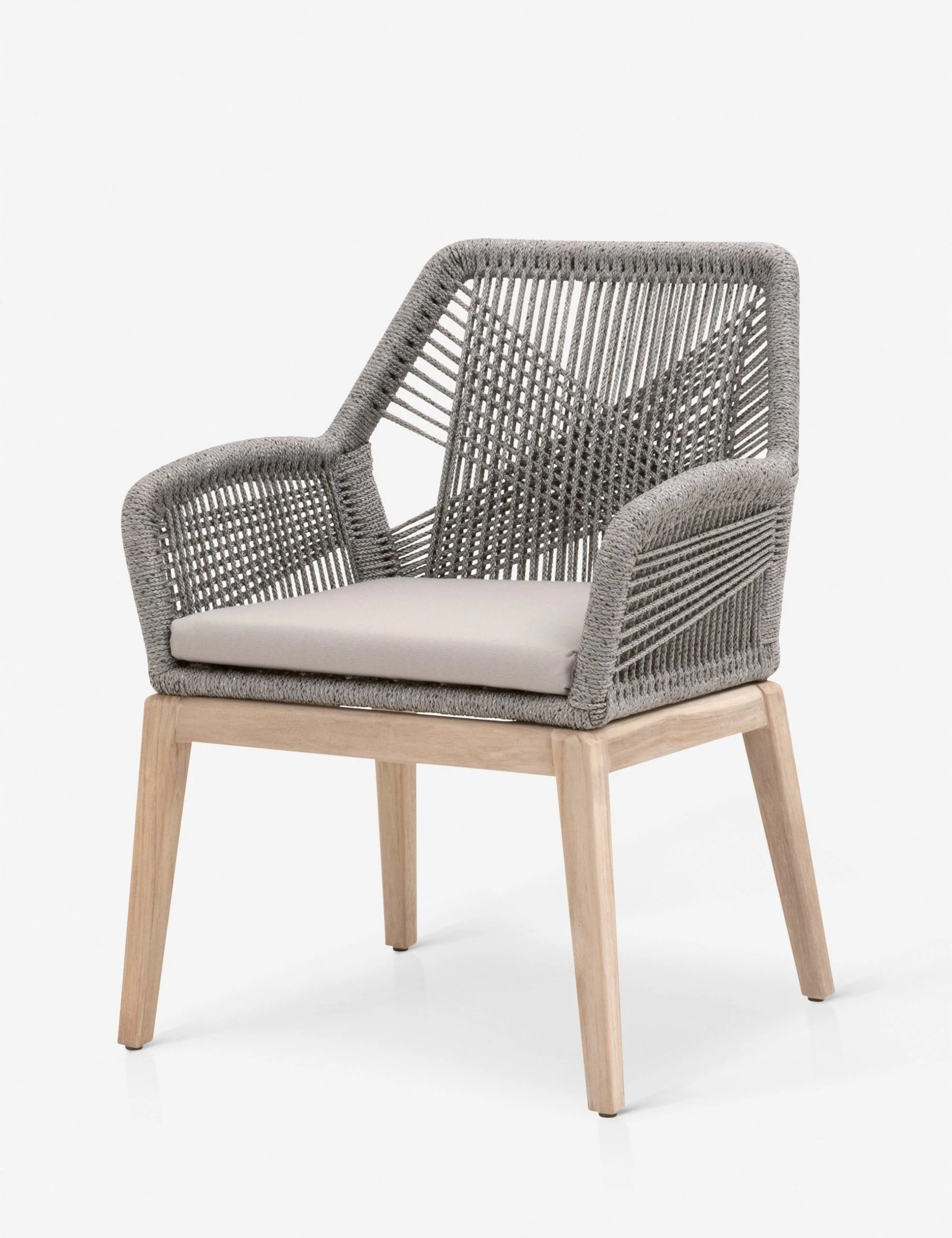 This arm chair offers a contemporary twist on outdoor living with an intricate crisscross rope weave on a classic light teak frame. A removable seat cushion adds an extra level of comfort, too.