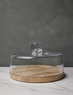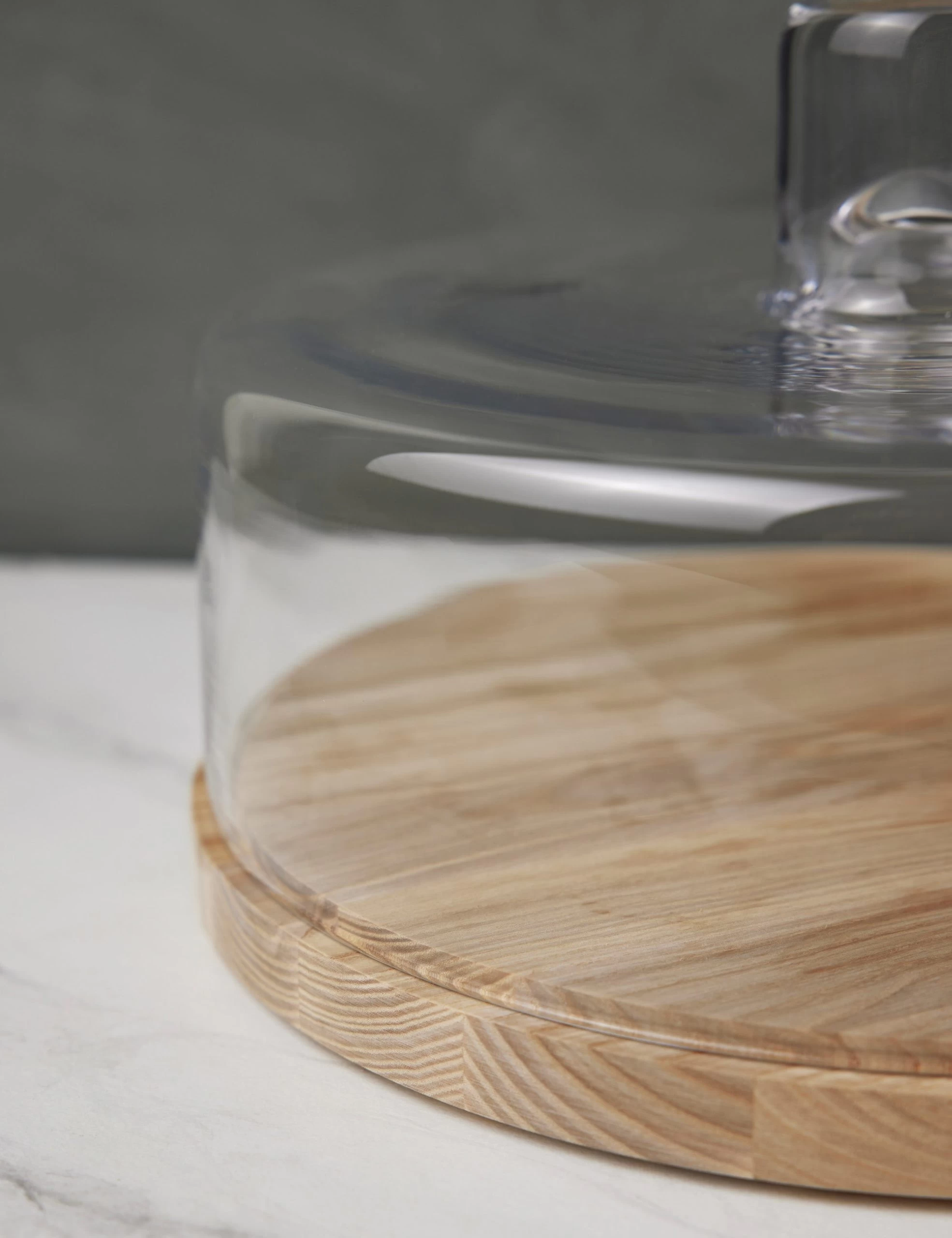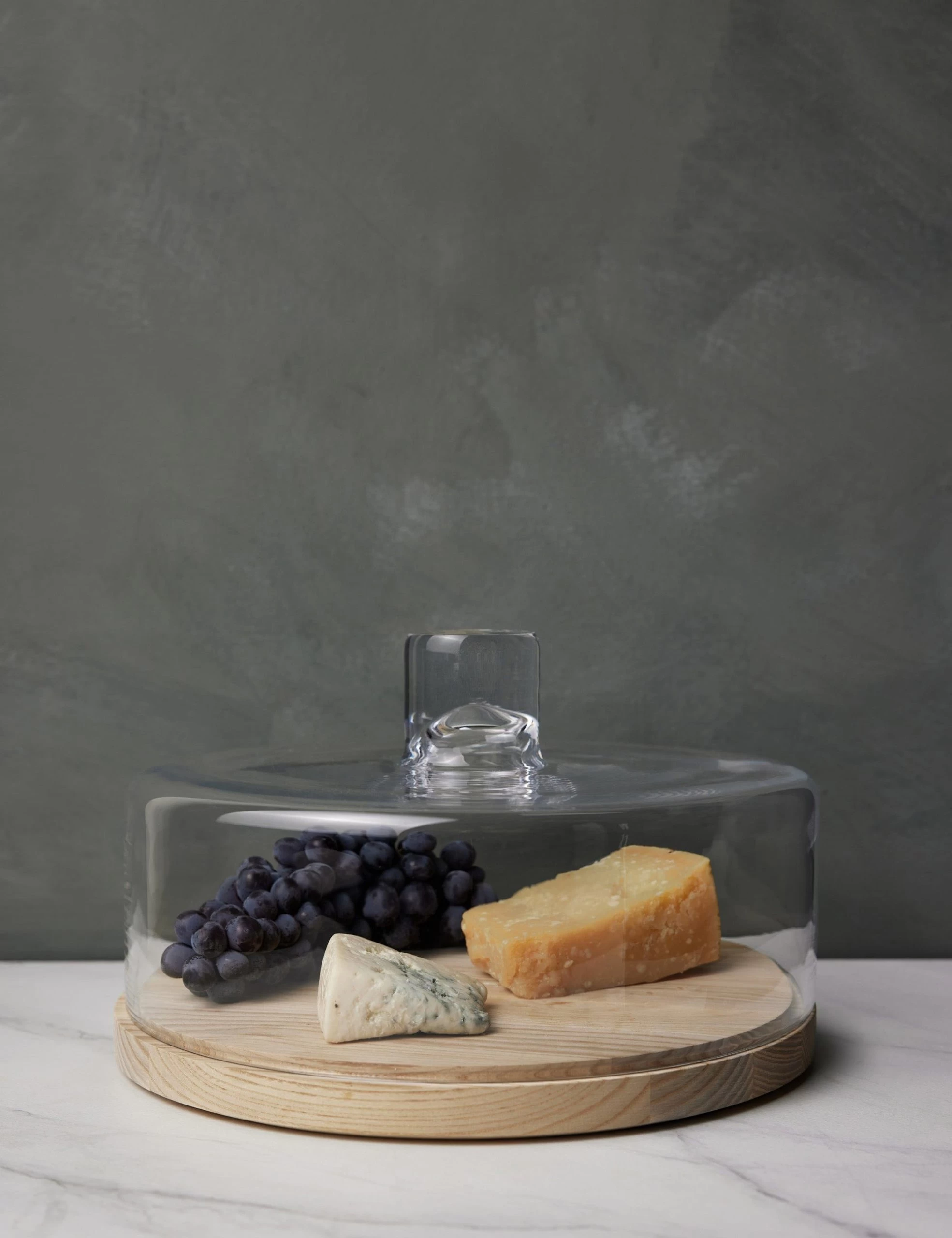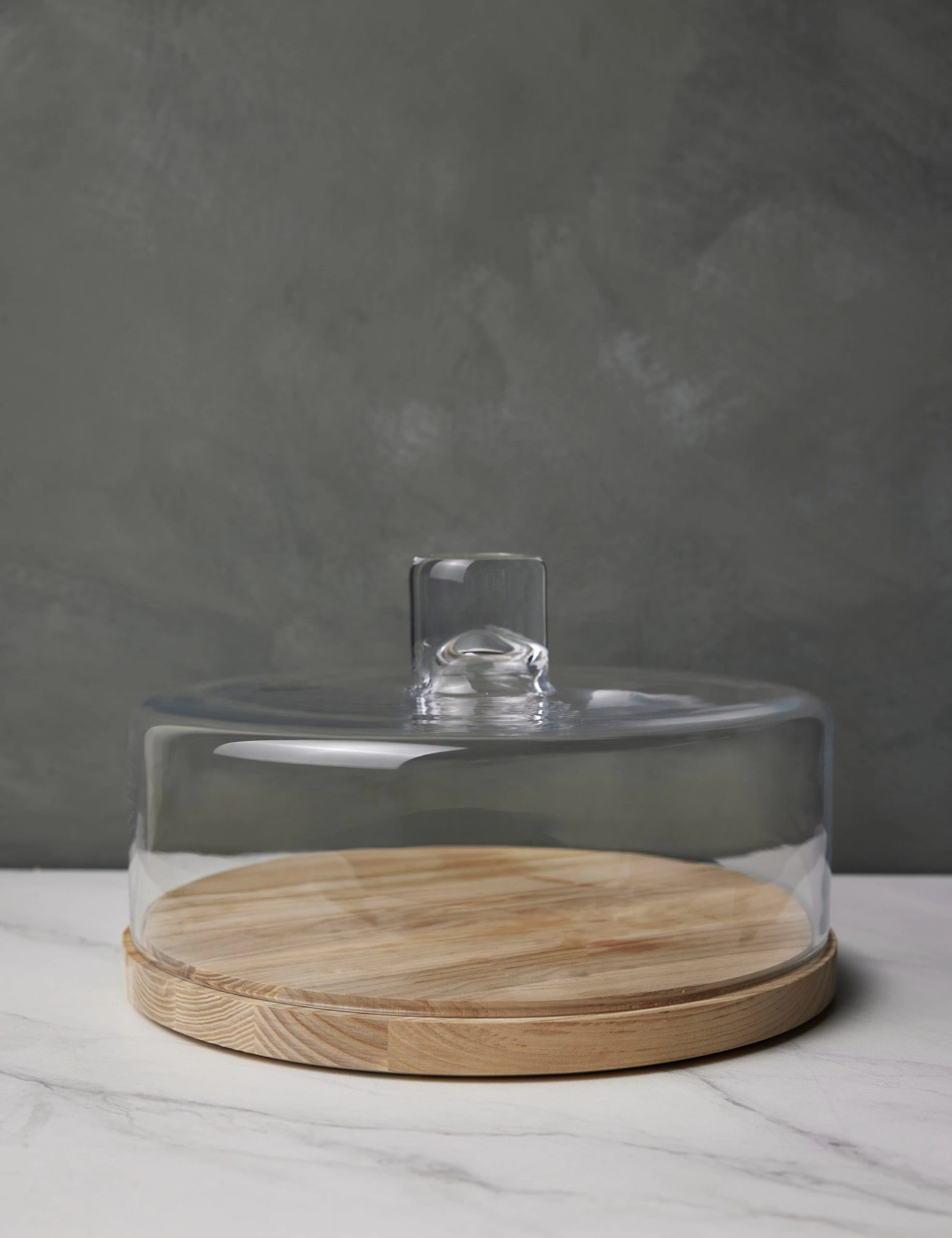 Mouth-blown glass is fitted with an ash wood base to offer clean silhouettes with a warm, natural touch in this cheese and pastry stand and dome. Dress your kitchen counter with an offering of fresh pastries and baked goods with this glass display serveware.