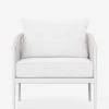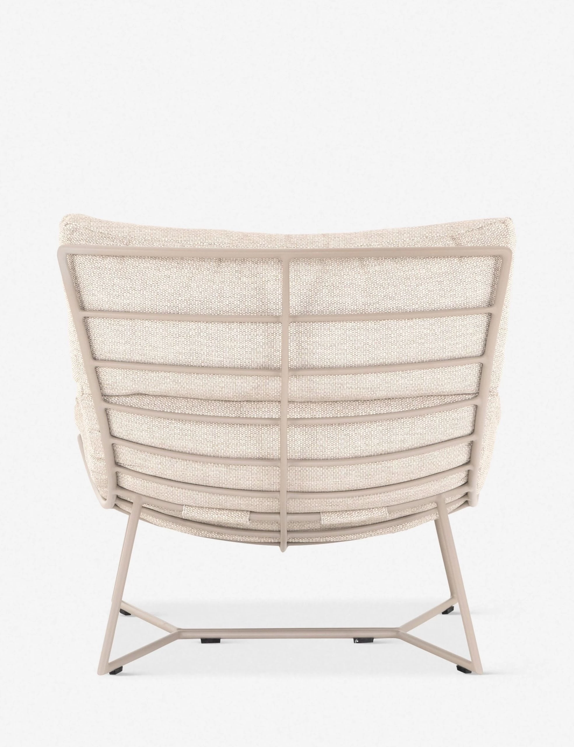 A swooping reclined seat is complemented with a billowy seat cushion and gray-finished iron frame to make for a refined accent chair. Upholstered with a durable, fade-resistant fabric in light sand, we love the idea of using this occasional chair to relax poolside, on your terrace, or even in your sunroom.