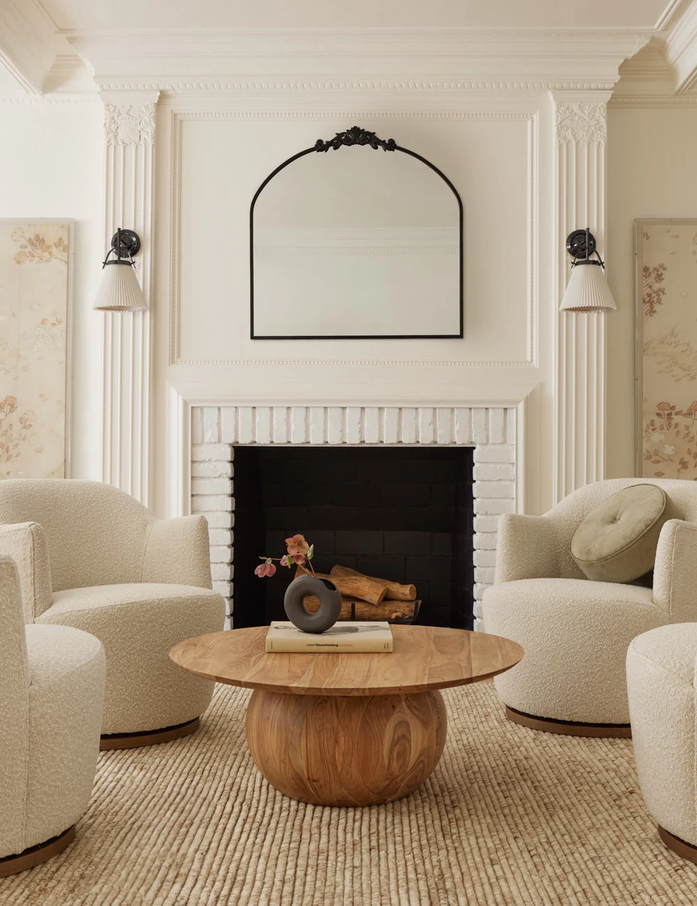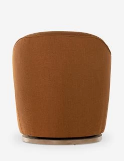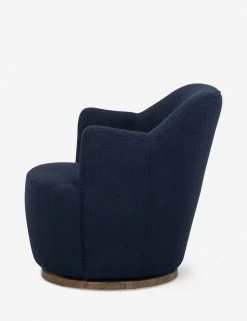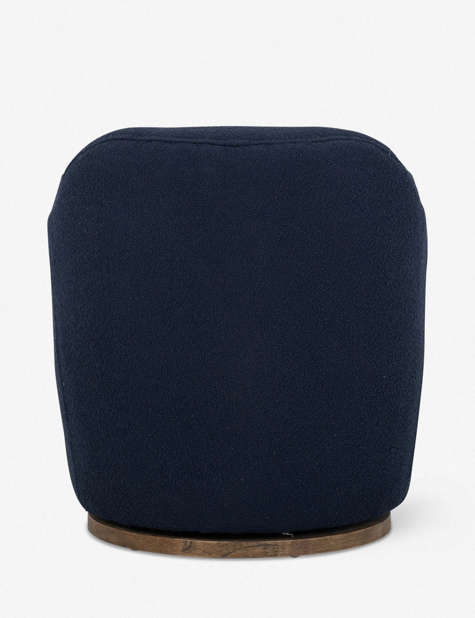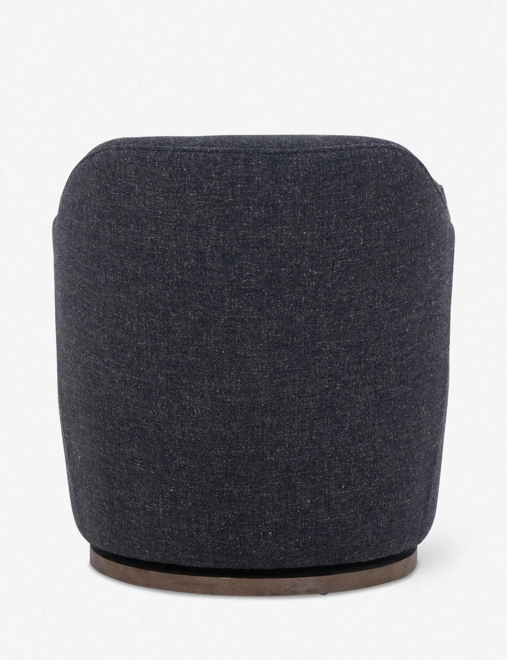Nubby fabric on the Margie Swivel chair creates an invitation to cozy up and sit. A circular shape makes for a unique piece, and a wooden swivel base allows for conversation in any part of the room.