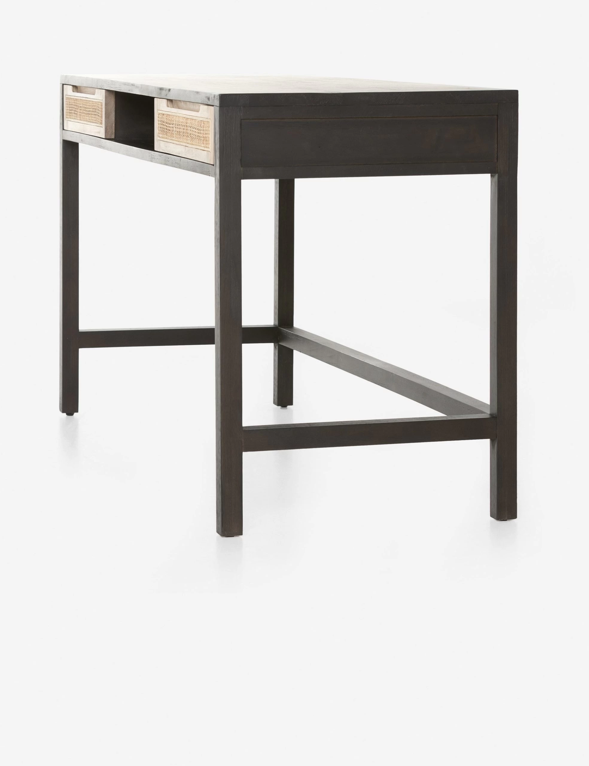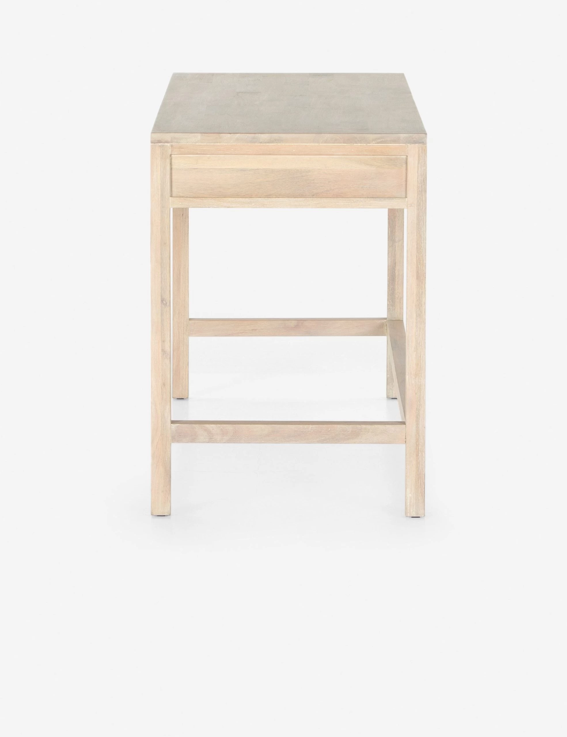 A timeless, clean-lined silhouette is elevated by detail-rich wood grain and woven cane drawer fronts to create this Margot Desk. Crafted from natural mango wood, its whitewashed finish complements the two cane pencil drawers for a tonal storage piece. Style this slim-lined workstation alone, or pair it with a matching corner desk or file cabinets.