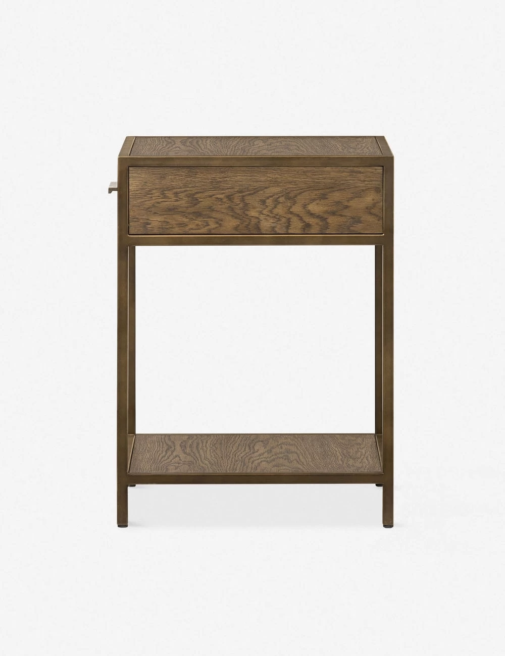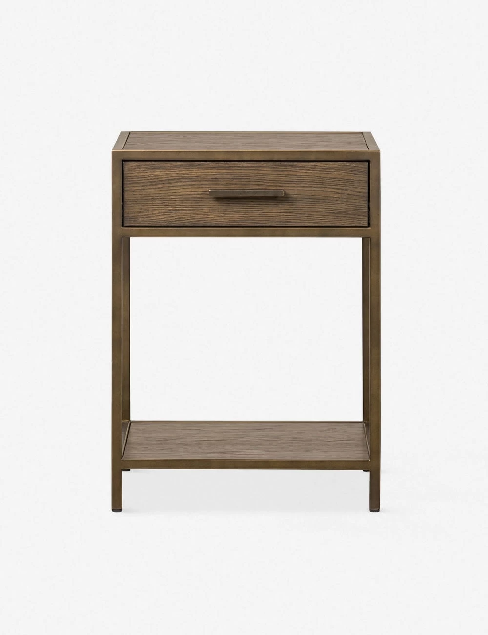 Offering up sleek mid-century design, this classic nightstand is the perfect stylish storage solution, with a metal drawer handle and frame to contrast the expressive wood grain construction.