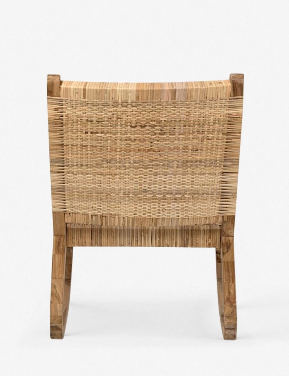 This whimsical occasional chair combines all the charm of an old-world hacienda with a refined twist. The architectural teak rocking base offsets woven rattan elements to create a combination affect that bridges the gap between tailored and casual. Try this accent living room chair in the corner with a floor lamp to create a cozy reading nook.