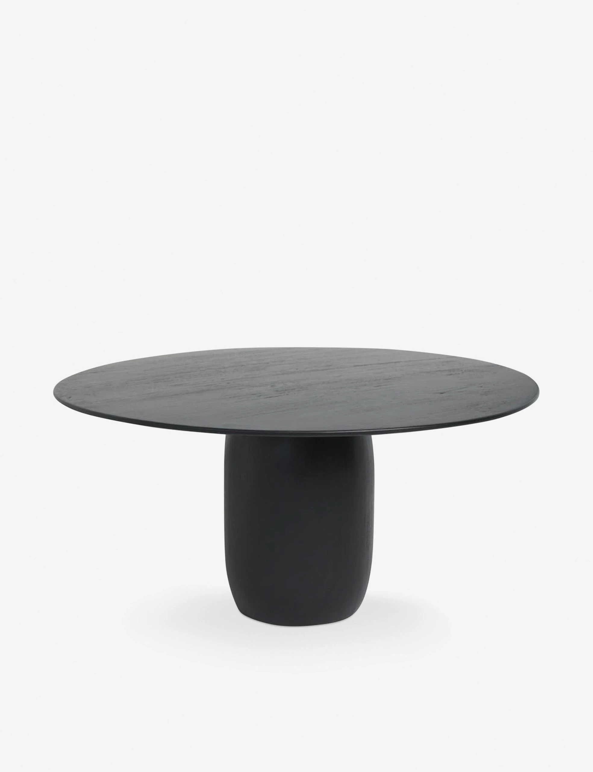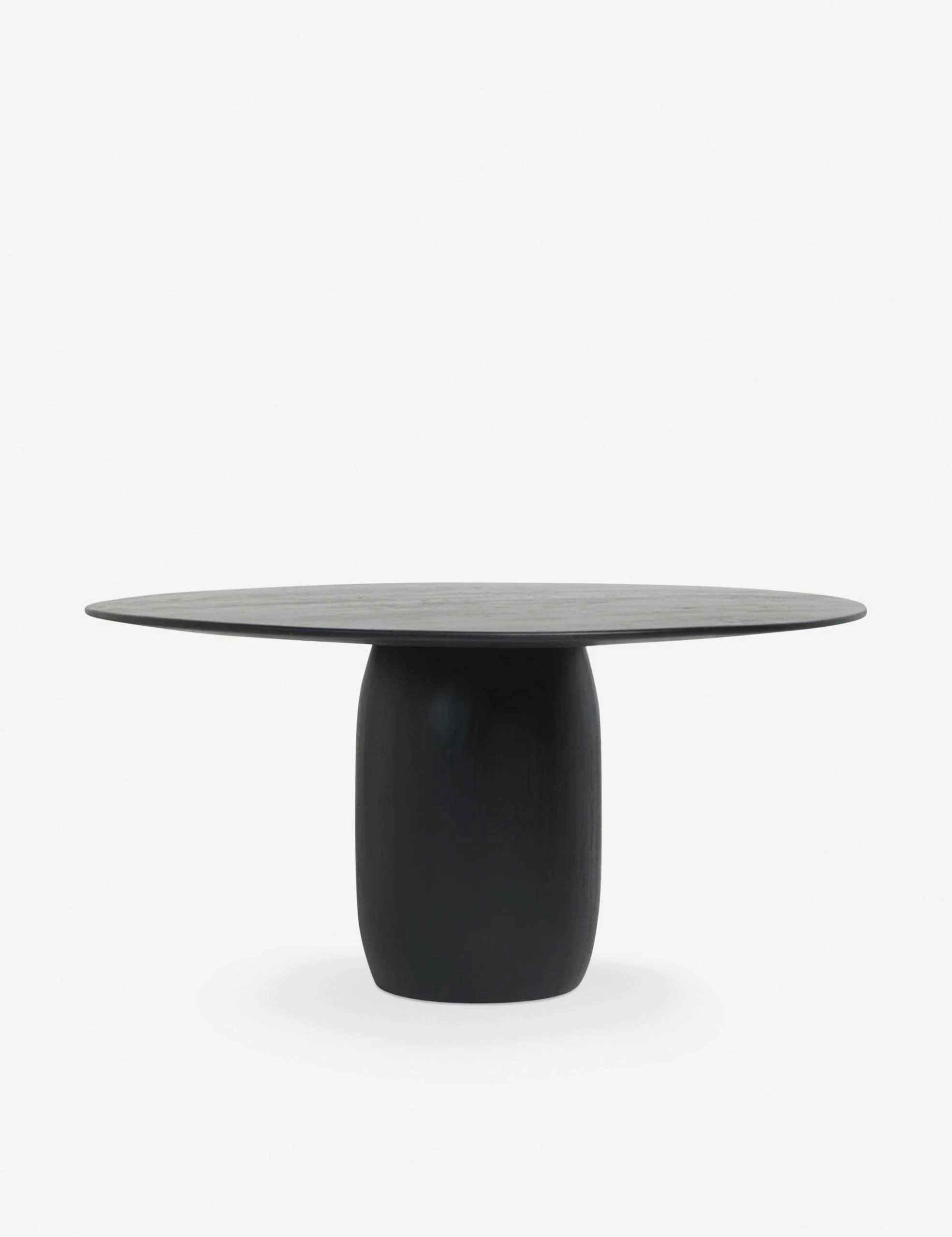 A stunning statement for a modern space, this black round dining table is bursting with plenty of versatile styling potential. The tabletop sits on a softly tapered pedestal base offering a crisp, inviting silhouette that you can dress in moody decor or style bare for a minimalist wood dining table look.