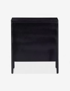 Black-finished iron set in a refined profile and fitted with bronzed iron hardware to evoke a clean, polished industrial look with stunning visual impact. This three-drawer nightstand offers ample bedside table storage or could be used as a small dresser for a child’s bedroom.