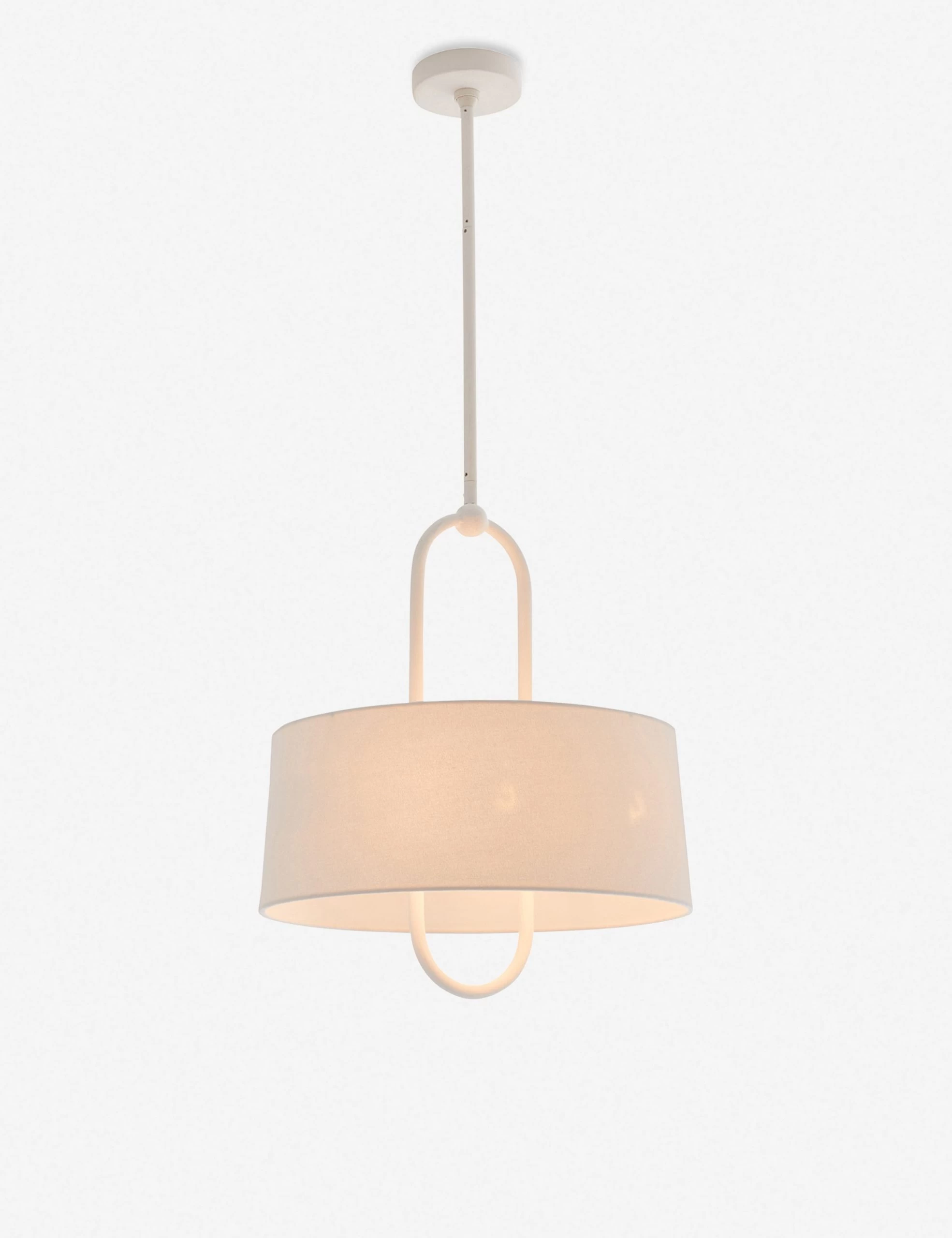 Pairing a loop-style frame with a linen drum shade, the Melody pendant offers a stylish overhead feature with a monochromatic look for a soft, balanced feel. We love this chic pendant for a bright and airy kitchen or lounge.