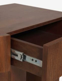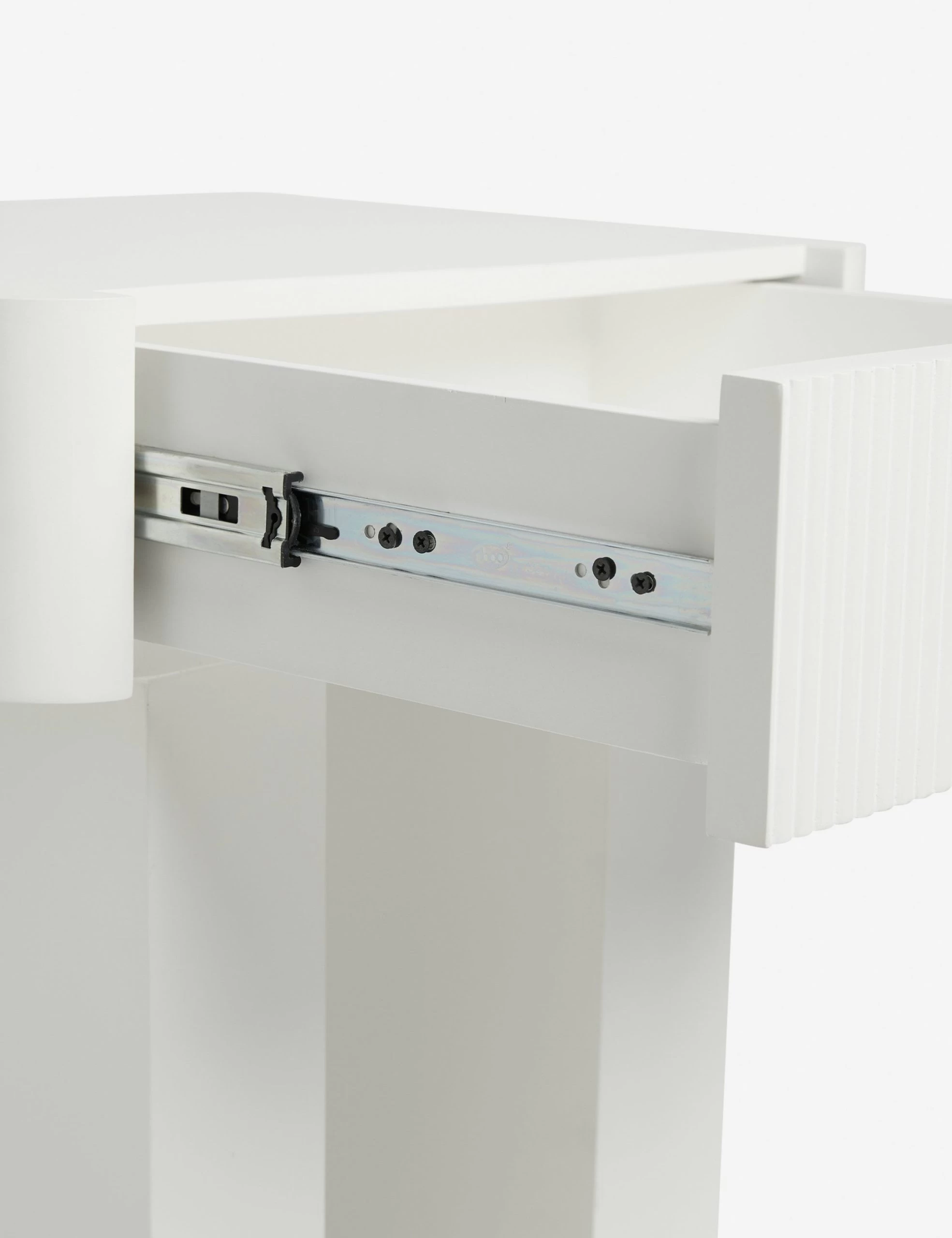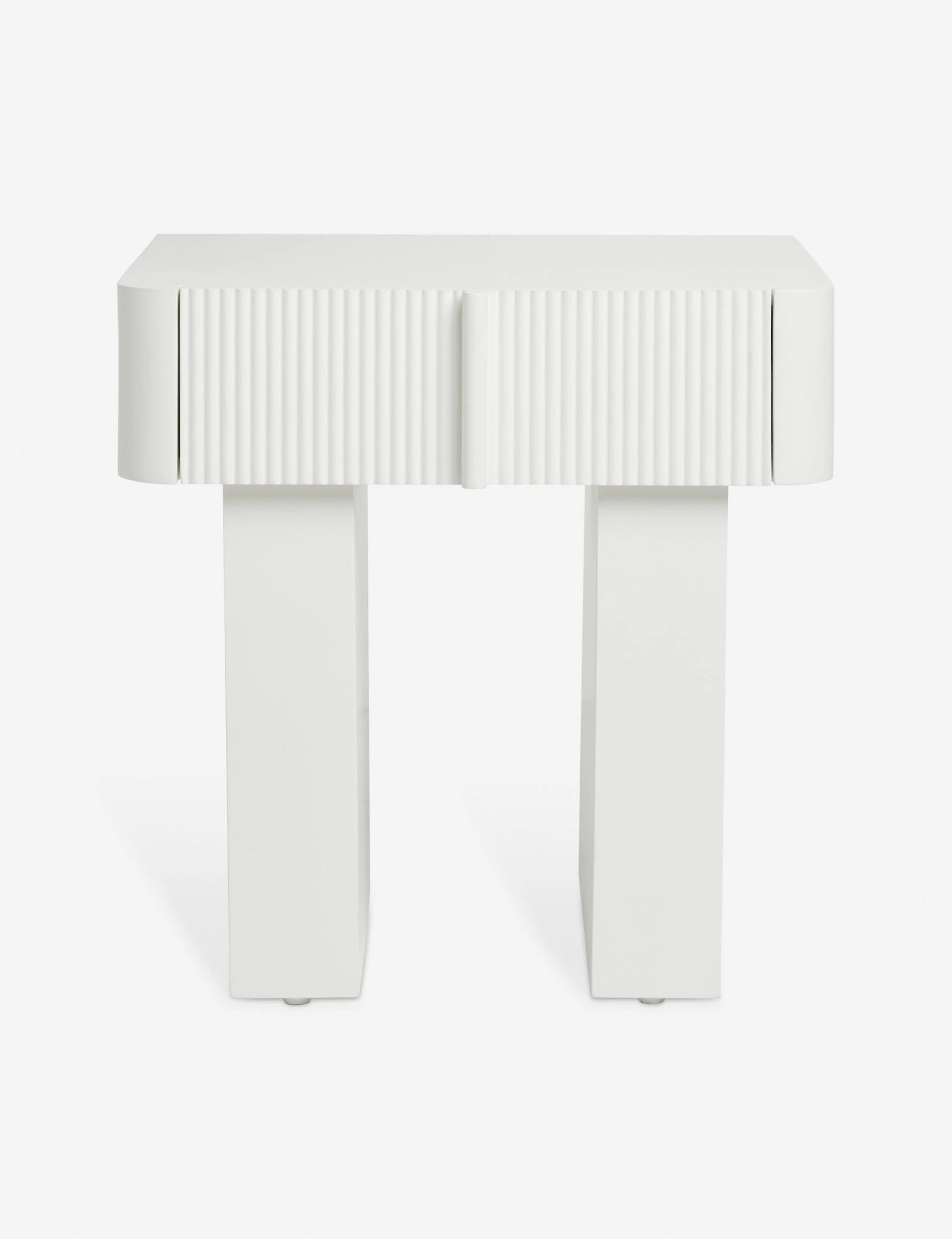 The Merrit nightstand features a deco-inspired woodwork construction that pairs crisp, curving lines with ridged detailing and a carved drawer pull. The drawer provides generous storage for a practical yet stylish bedside table. This piece is from our exclusive Sarah Sherman Samuel collaboration and features all the trademarks of her warm, edited style.