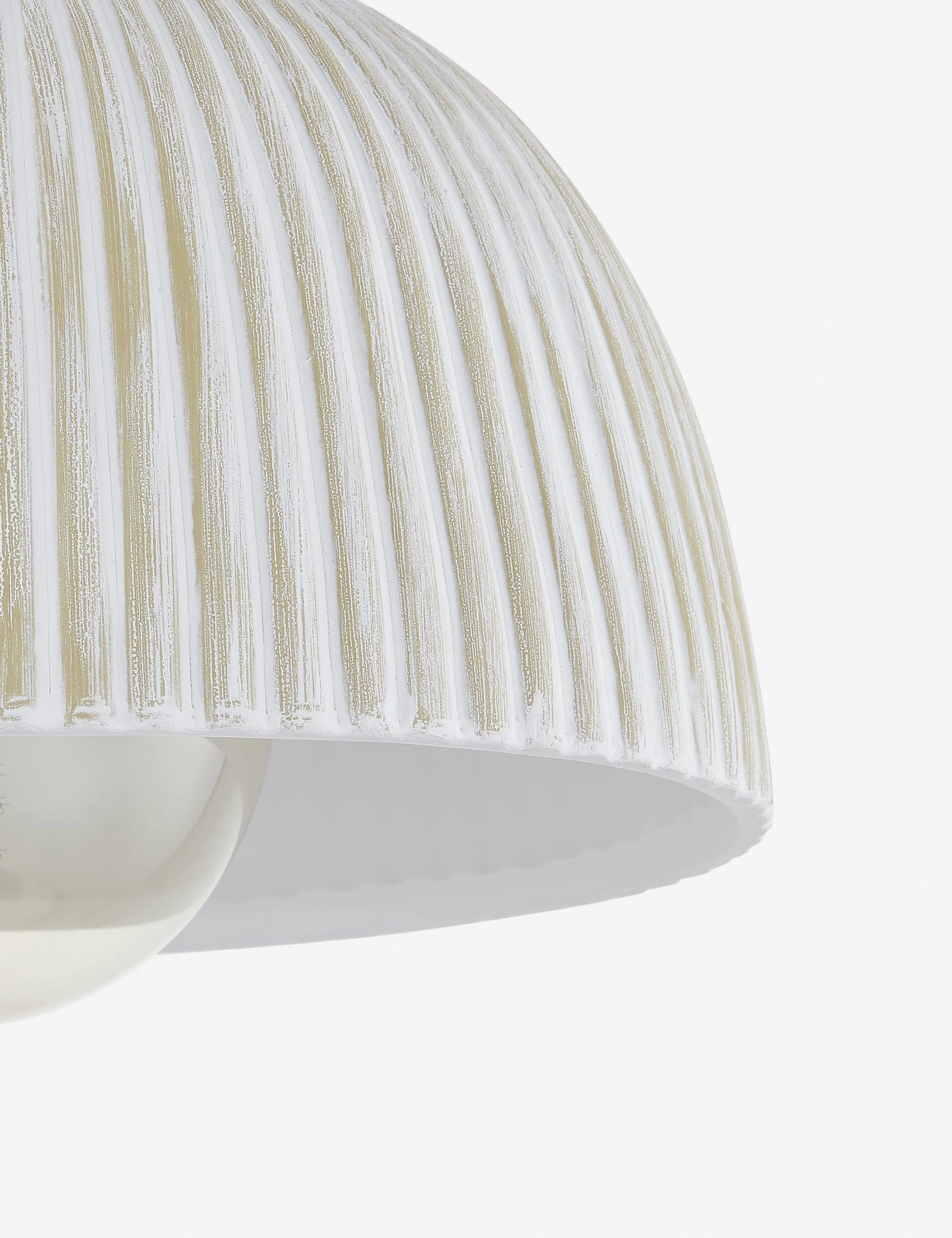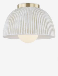 For a space that blends rustic elements with refinement, the Millicent flush mount is sure to impress. A ceramic shade brings textural intrigue to the overhead light fixture with its fluted form and rustic finish. The subtle accent of an antique brass canopy completes the look for balanced sophistication in the room.