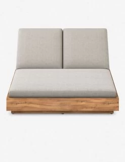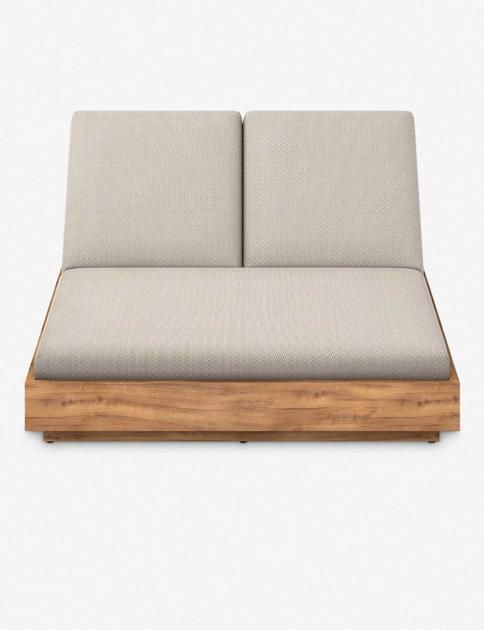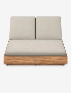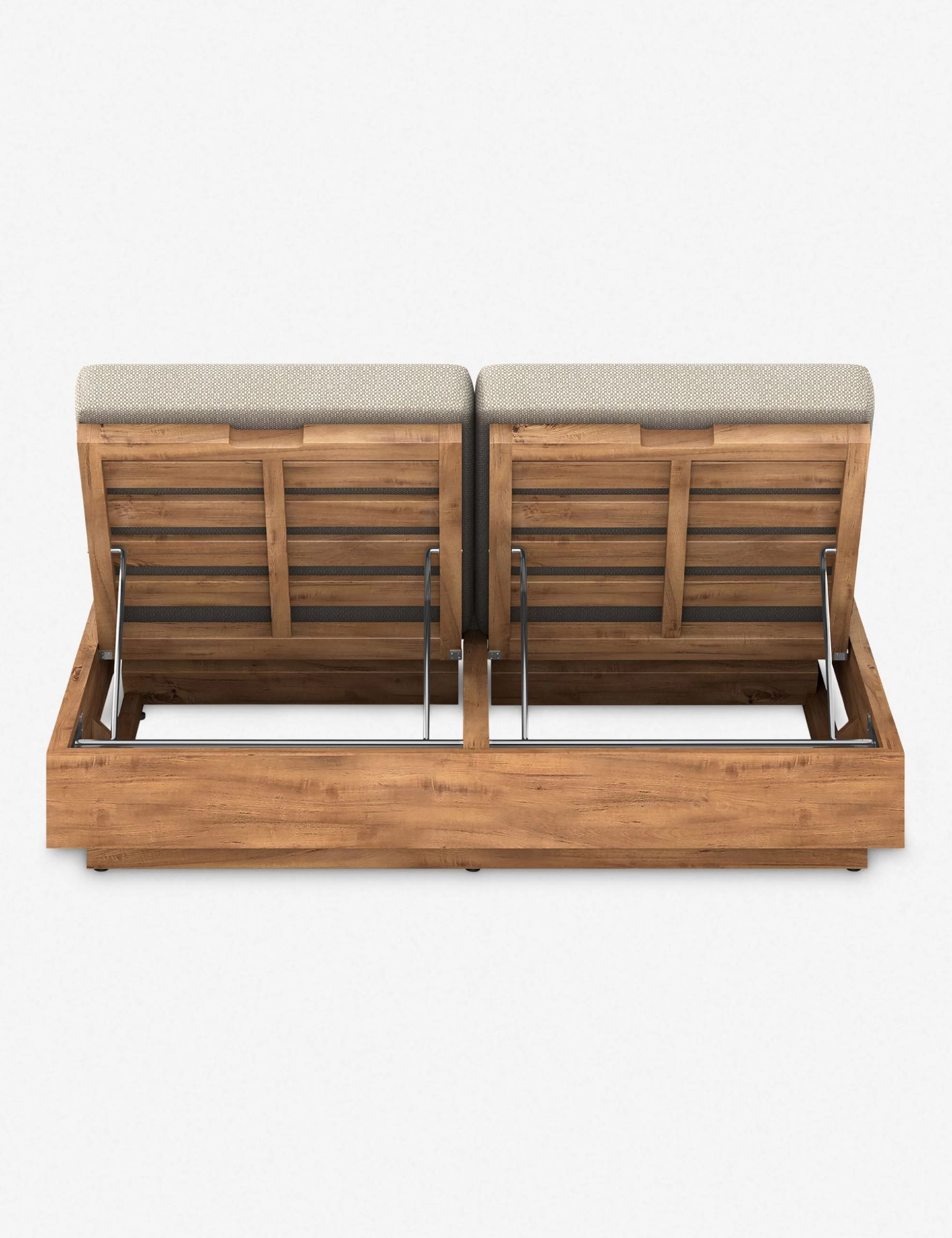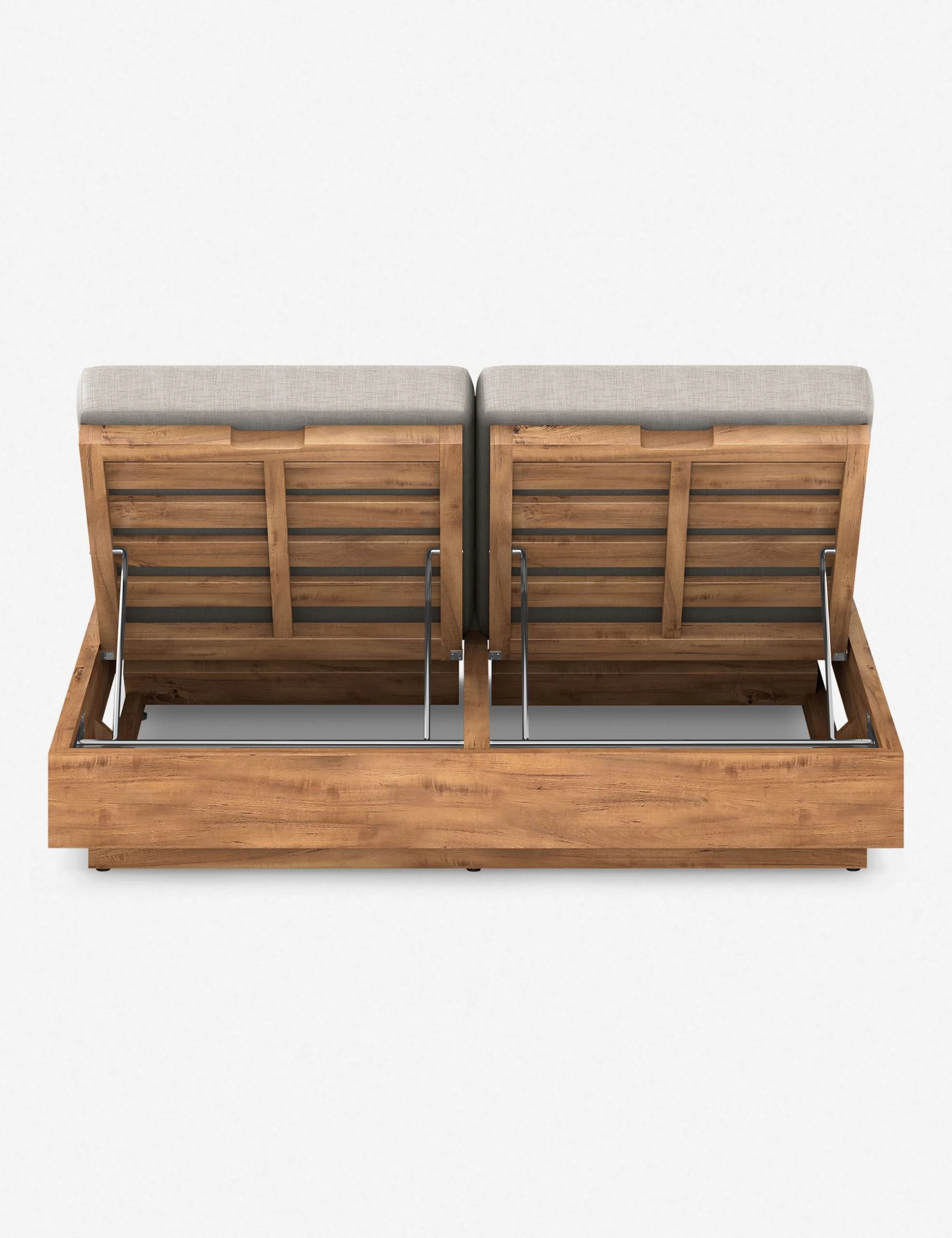 Streamlined design with a beautiful, solid teak box frame offers lasting style in this refined double chaise. The performance upholstered cushions and adjustable back offer dynamic comfort so you can lounge in ease. With its generous dimensions, this spacious chaise has plenty of room for two.
