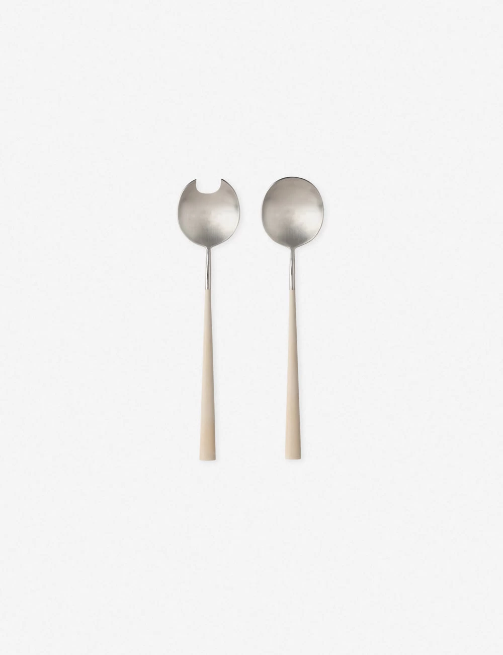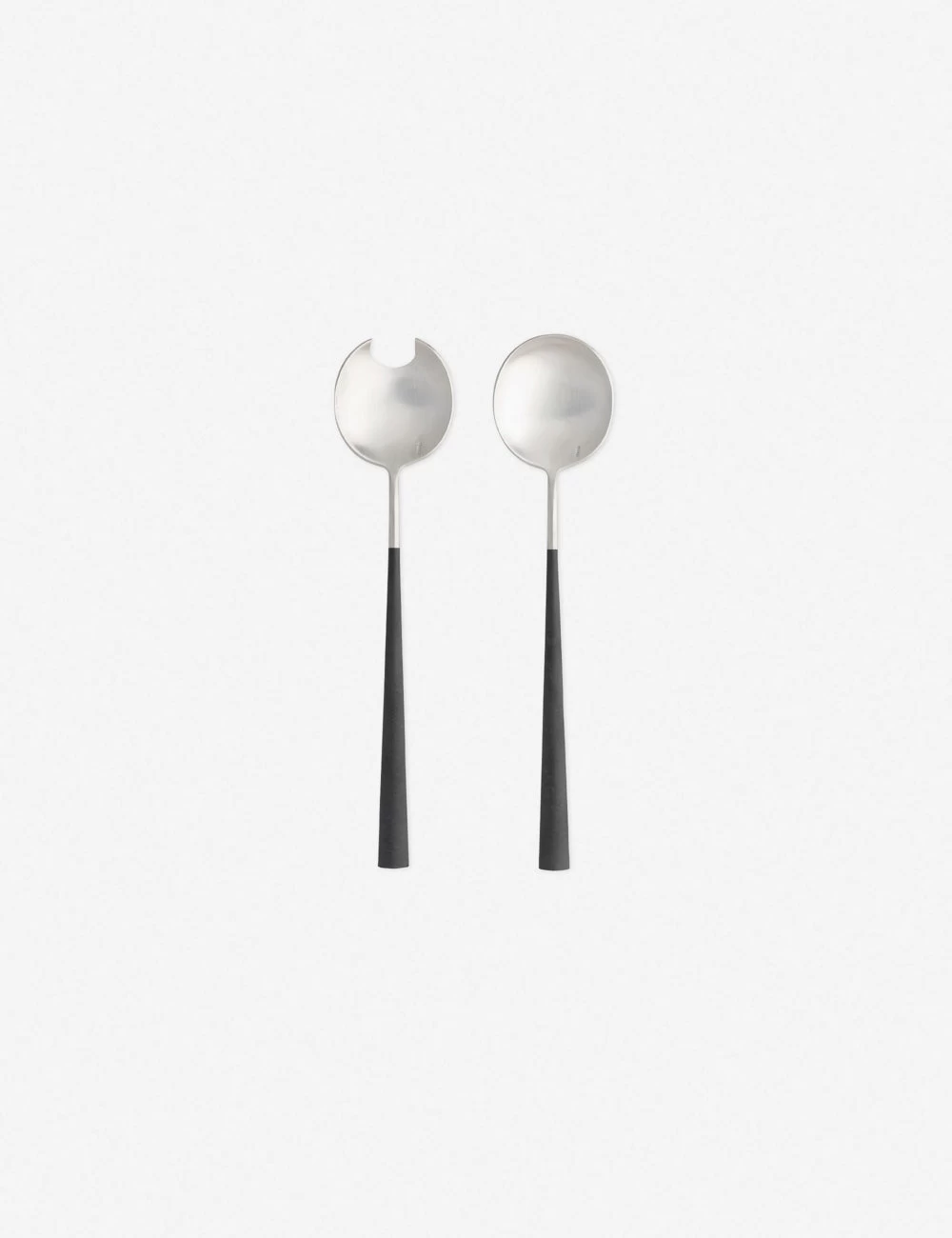 Balanced, modern, and elegant, the Mito flatware collection is a striking addition to your table. These salad servers are made with stainless steel and finely crafted slender handles tailored to suit your look. Plus, this set is dishwasher safe for everyday appeal.
