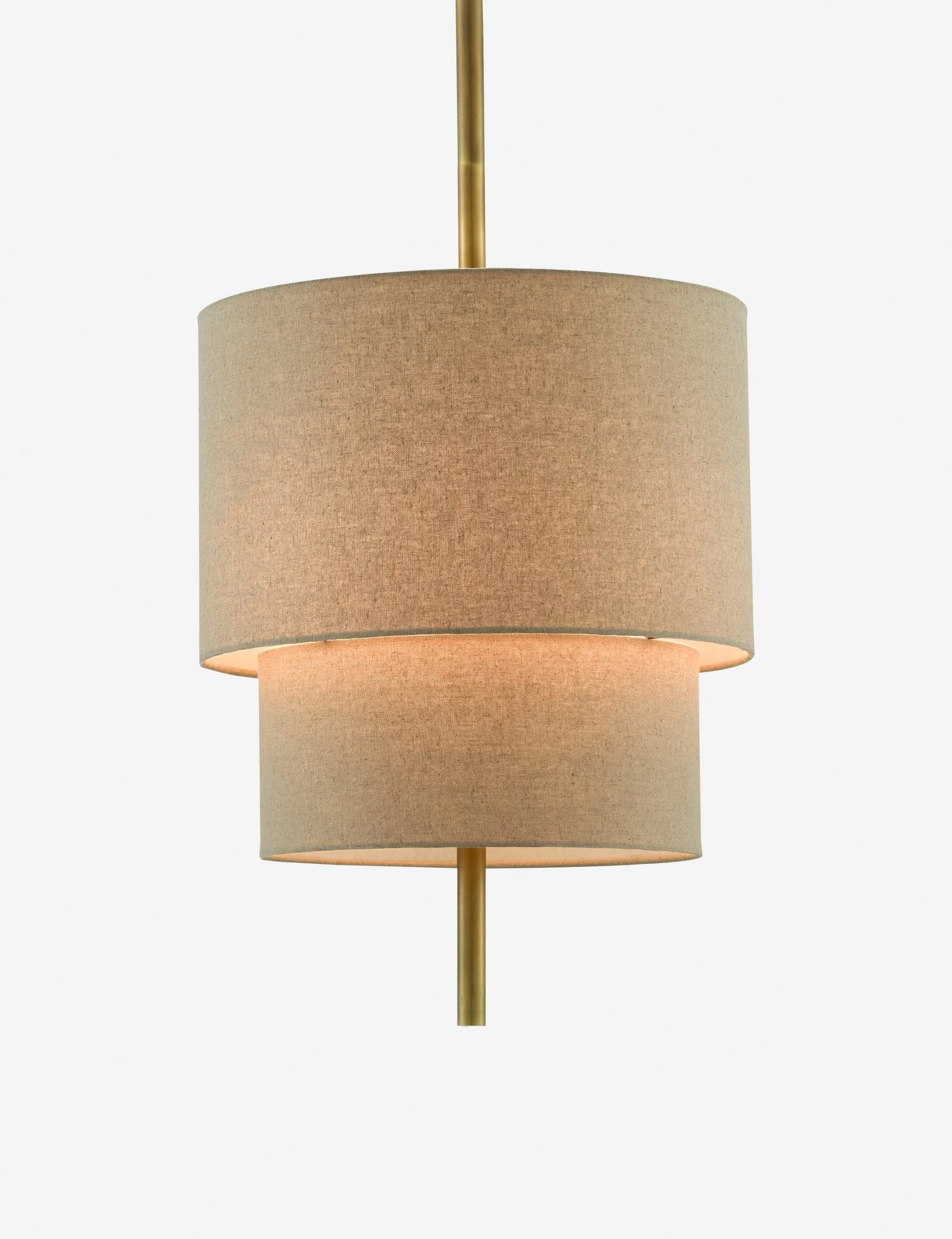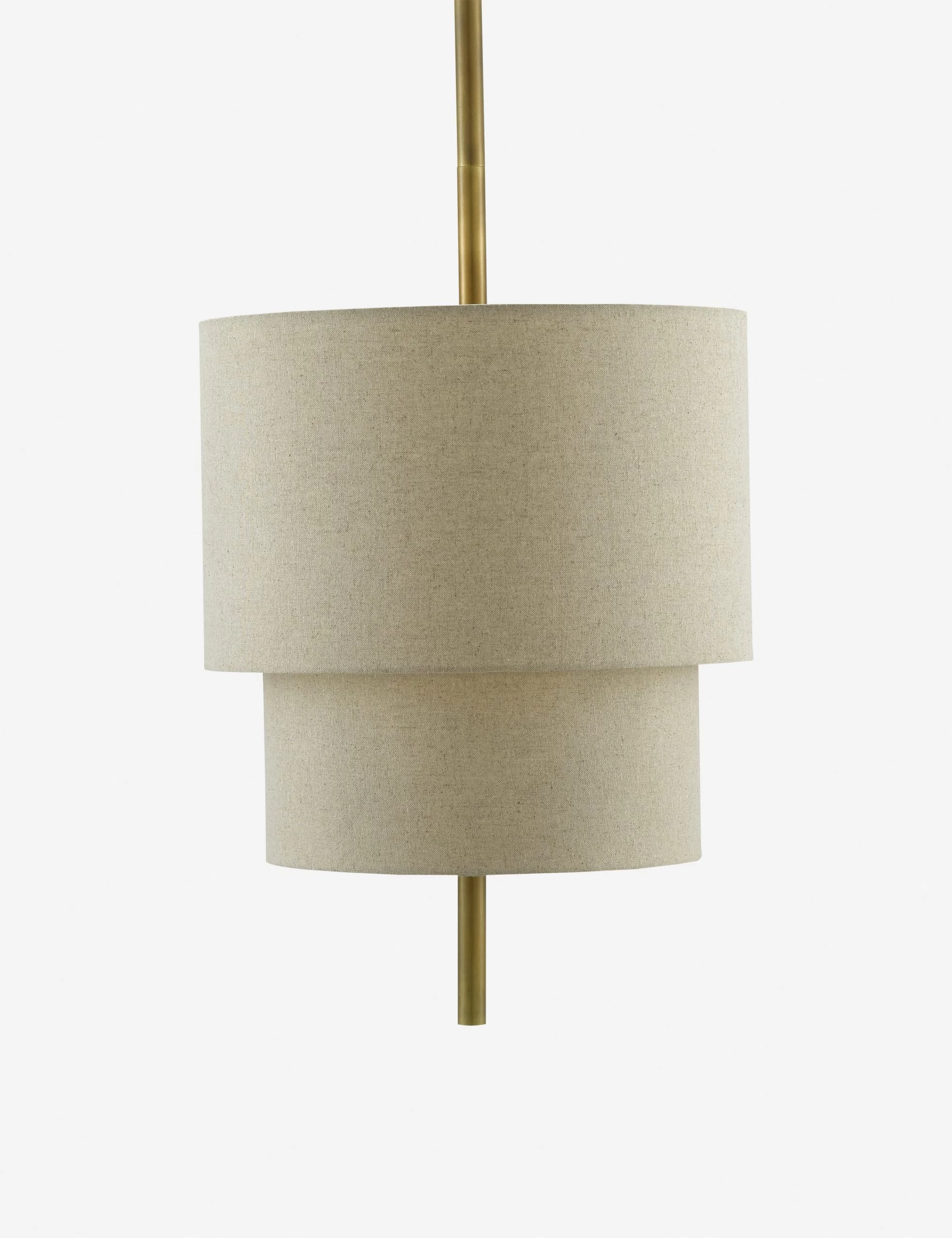 The Morrow pendant features simple shapes stacked and wrapped in linen for a clean, understated profile. The central stem is finished in antique brass to add a touch of sophistication and poise. With its natural fiber texture and polished accents, this minimalist pendant design can fold into transitional and modern looks with a seamless appeal.