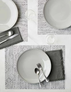 A timeless diamond twill weave is given new life in this set of eye-catching placemats. The mosaic pattern unfolds with an endlessly complex geometry.