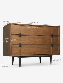 In a rich walnut stain, this Mid-Century Modern dresser brings a sense of retro style with a contemporary twist. Metal pulls and tapered legs complete the look.