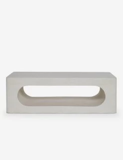 The Nasir coffee table brings a sculptural edge to outdoor style. An oval cutout creates geometric contrast against the clean-lined silhouette that plays great in natural light. We love this concrete coffee table for an elegant backyard escape.