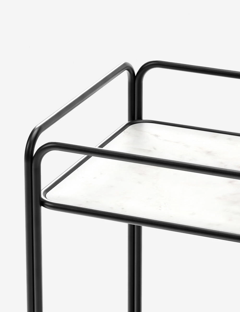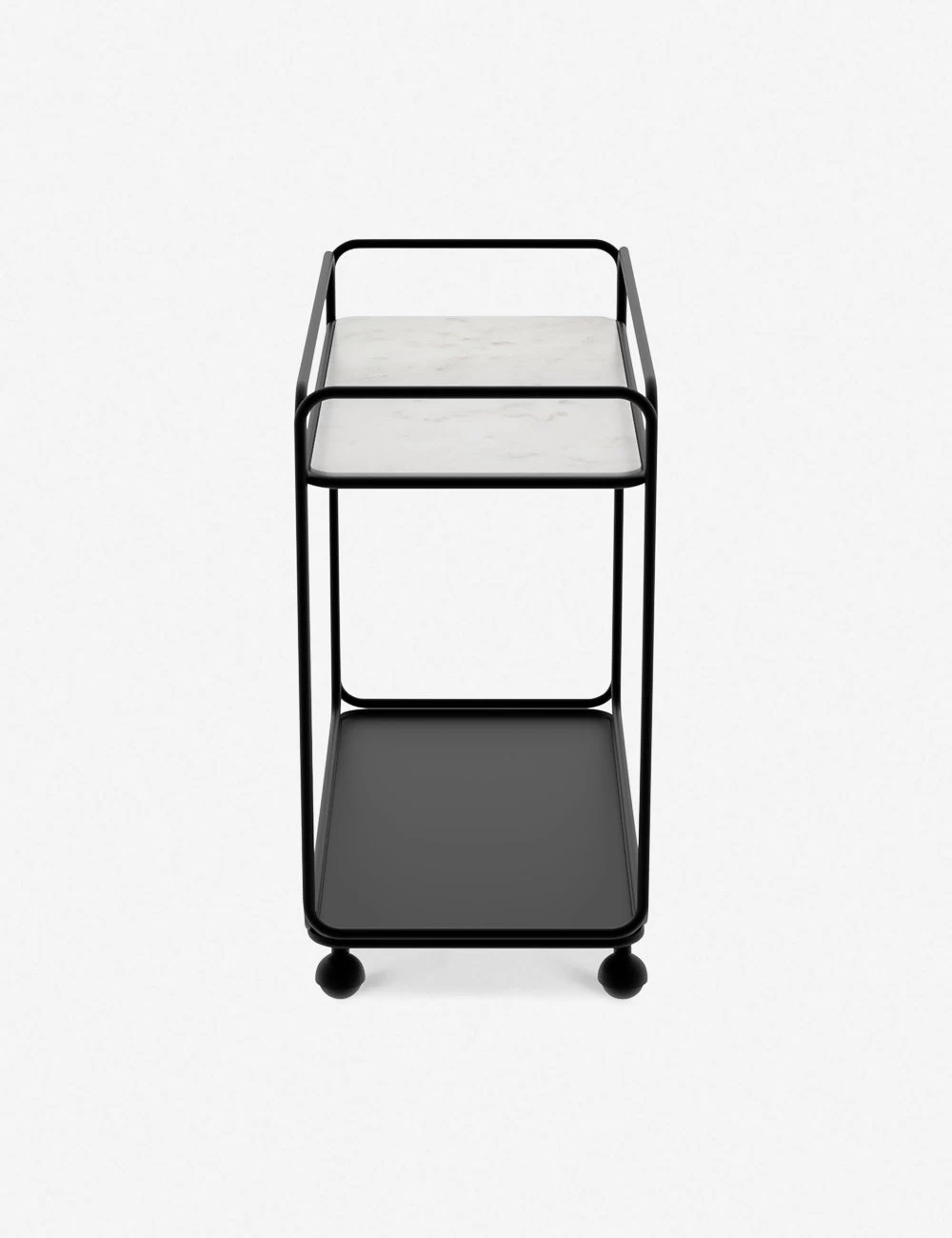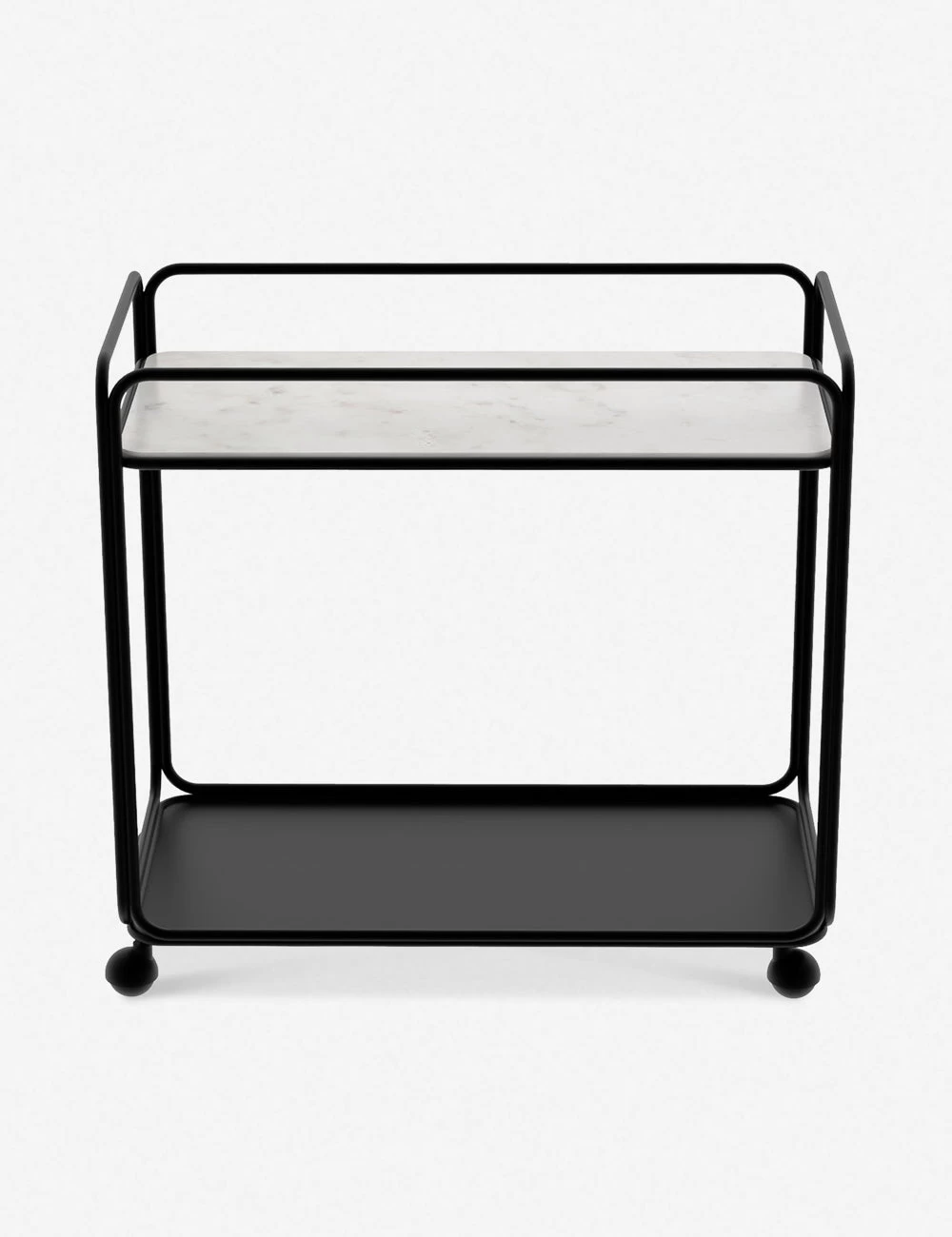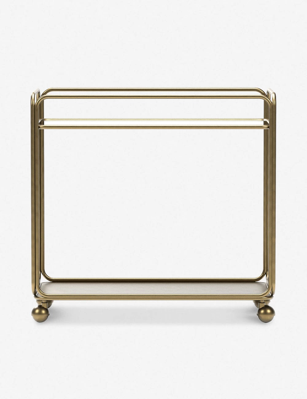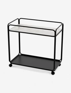 A bar cart made for bringing a refined style to your small space look. The steel tube frame sits on ball casters casting an airy, modern silhouette perfect for a curated design moment or dynamic appeal when entertaining.
