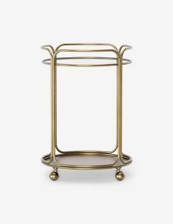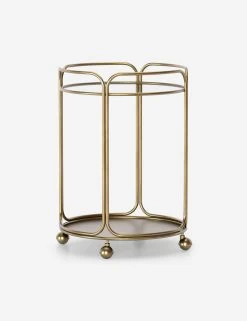 A round bar cart made for bringing a refined style to your small space look. The steel tube frame sits on ball casters casting an airy, modern silhouette perfect for a curated design moment or dynamic appeal when entertaining.