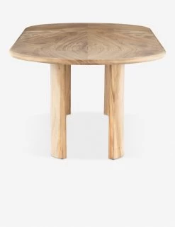 Smooth lines and a natural grain appeal give this wood dining table a rich and polished tone. We love how the thick, curved legs echo the shape of the oval top to create a long, sturdy table that is easy to gather around in any number.