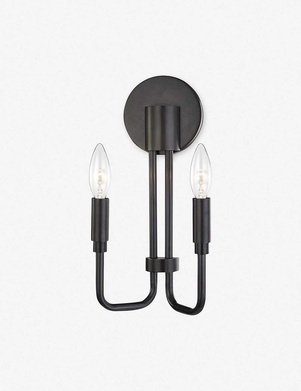 A pair of candelabra bulbs bring a touch of traditional style to this wall sconce, while sleek hardware keeps the look completely modern.