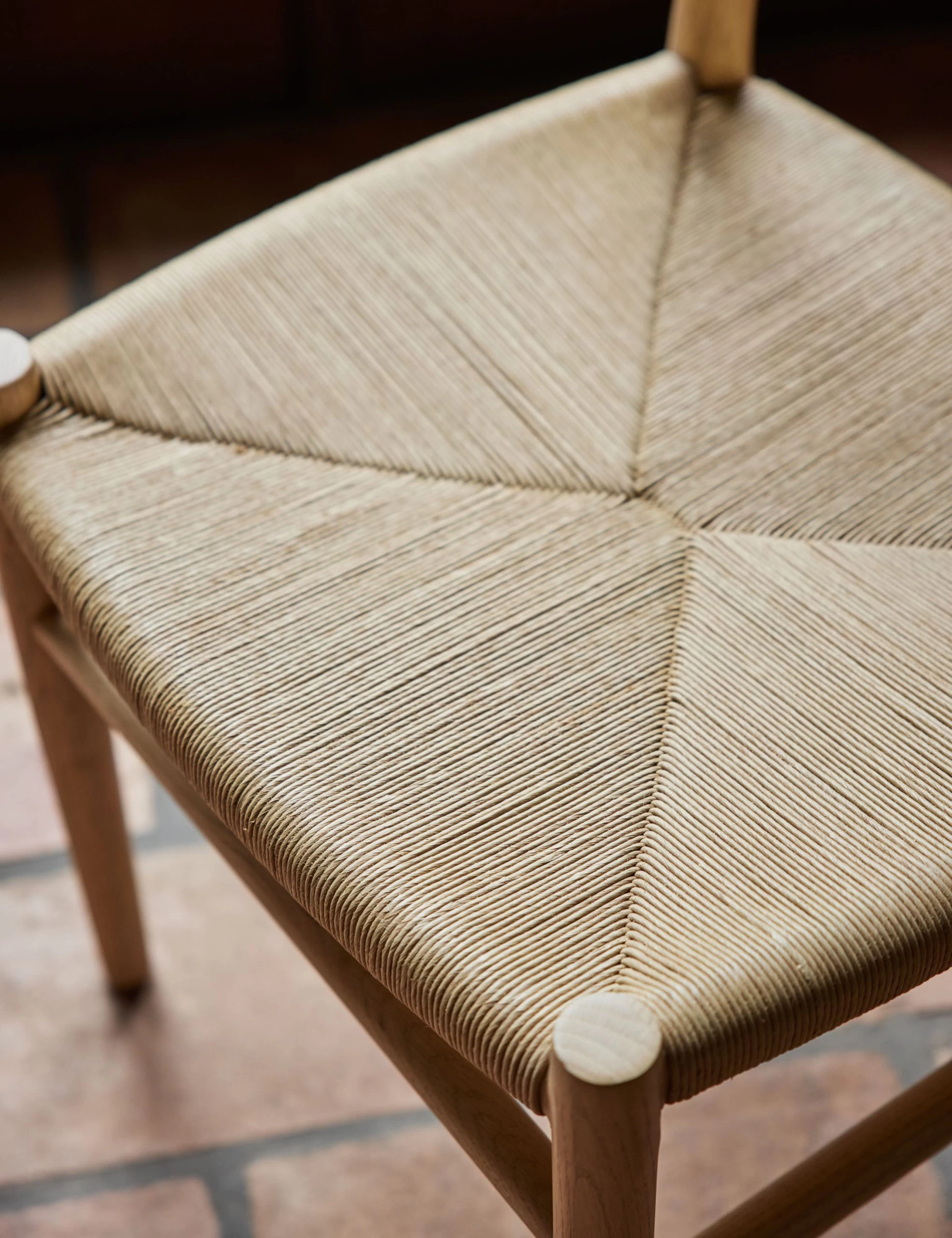 Our Nicholson dining chair is a stylish classic for minimalist charm. The slim-lined wood frame and woven seat combine rustic notes with a hint of modern appeal for a versatile dining seat that can add warmth to a transitional look or a soft organic tone in your dining room, kitchen, and beyond.