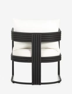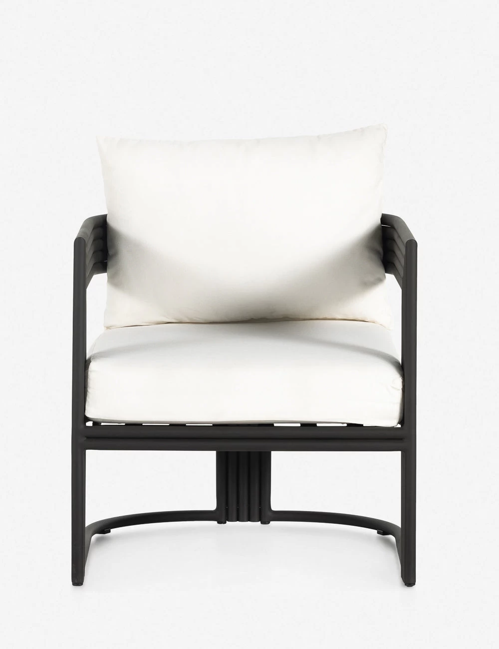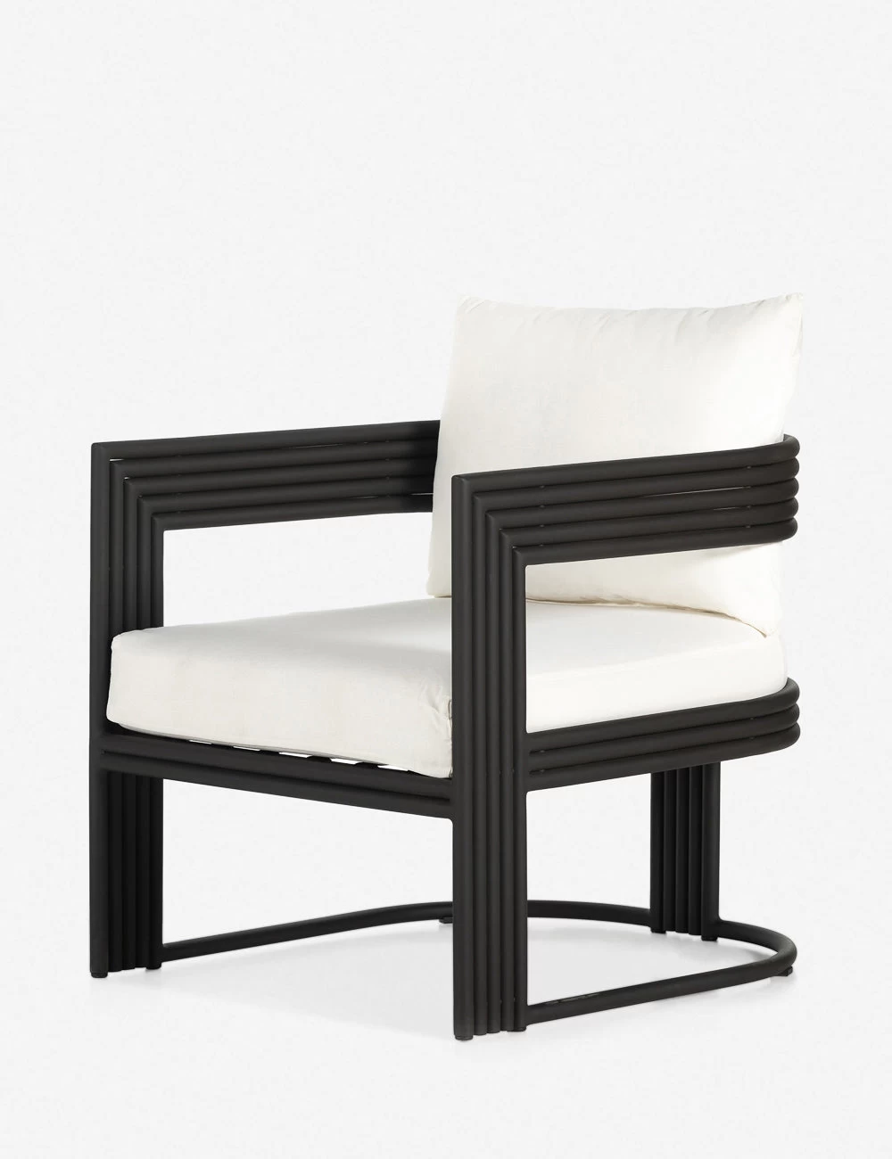 Sculptural metal piping creates a modern barrel frame in this indoor/outdoor lounge chair. Performance fabric cushions finish this accent chair with a soft yet practical touch for year-round comfort in your backyard oasis or a chicly styled sunroom.