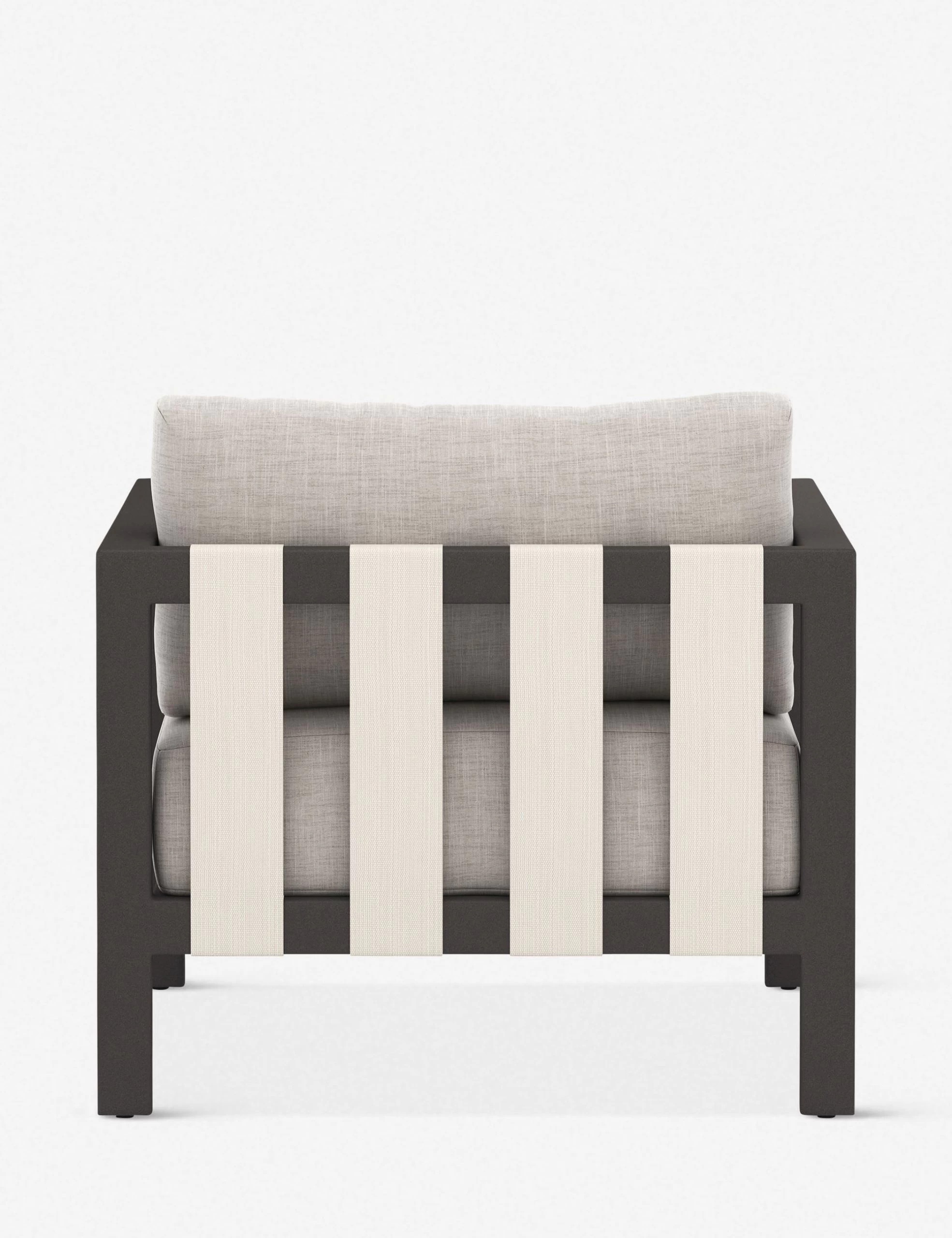 Update your outdoor living space with the contemporary comfort of this chair, featuring a weather-resistant teak frame and upholstered cushions. With sleek lines, a low profile, and contrasting back straps, this lounging piece looks great from every angle!