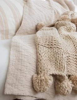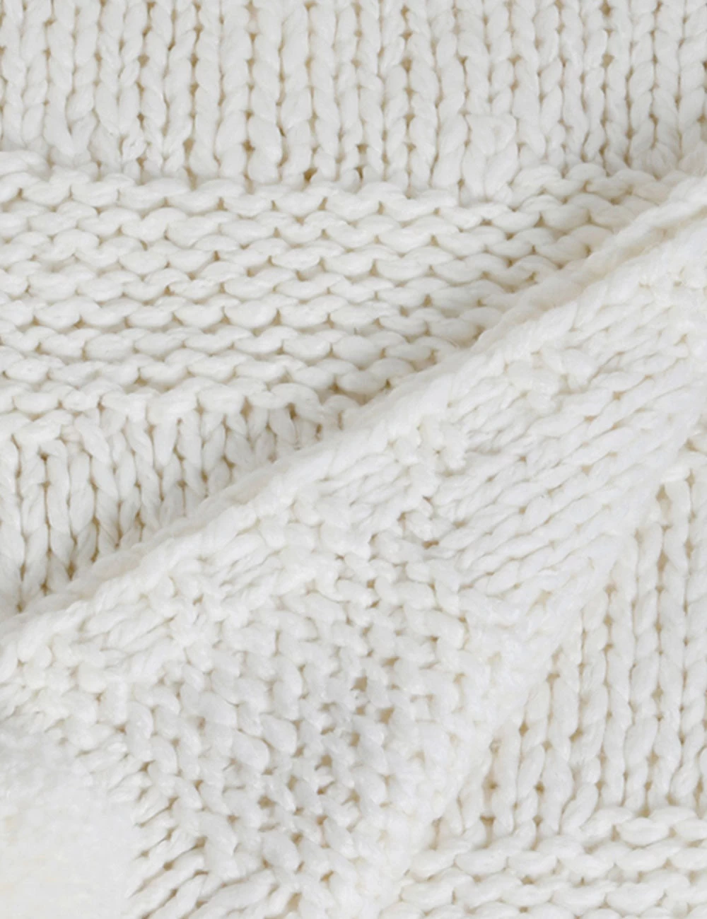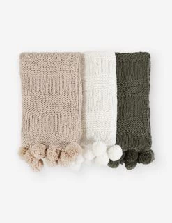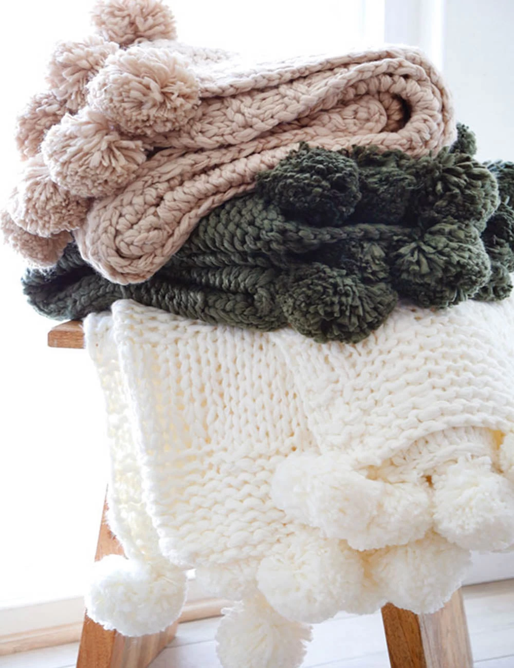 With a chunky knit in alternating weaves, this throw offers an irresistible texture to your favorite seat. Pom poms add a chic touch for an extra cozy everyday blanket with a stylish edge.