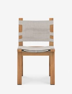 Bring distinctive style to your outdoor gatherings with this unique dining seat. A rustic wood frame of FSC-Certified teak supports a sling seat made from durable, weather-resistant fabric. The rope detailing on each stretcher adds a rugged touch to offer seasoned appeal in a dining chair design.