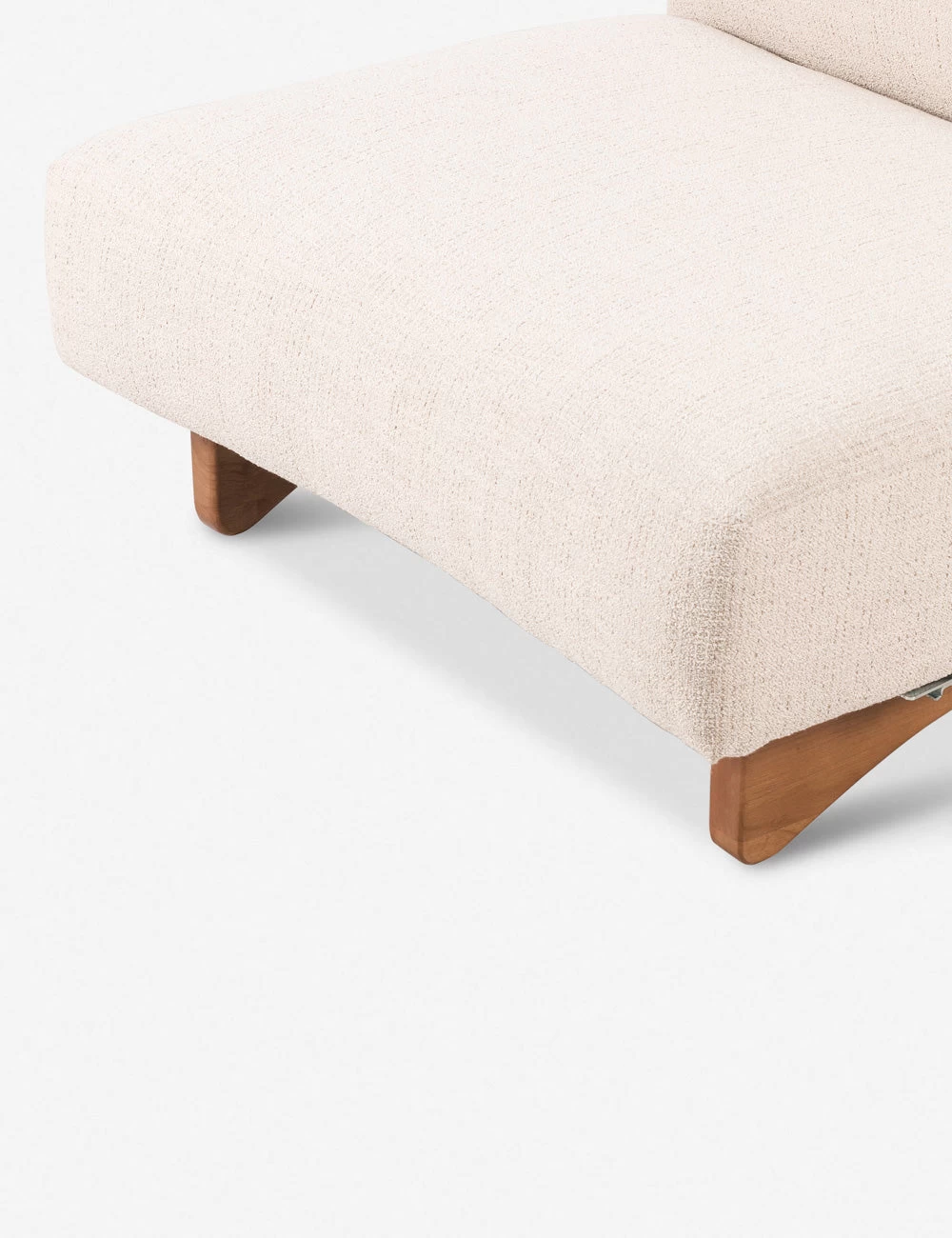 Trim lines and curved wood legs add a sculptural tone to this low-slung chair design. The soft yet practical appeal of the performance upholstery makes this accent chair perfect for entertaining or everyday style. Create a tailored space with the Peters Sectional Sofa or set off your living room with a signature statement.