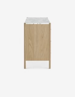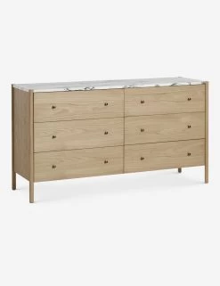Our Philana dresser brings a touch of polish to any bedroom edit. A honey finish highlights the natural grain warmth of the frame, grounding the luxe marble top with organic appeal. Six spacious drawers offer ample storage to this balanced design for a modern dresser with timeless appeal.
