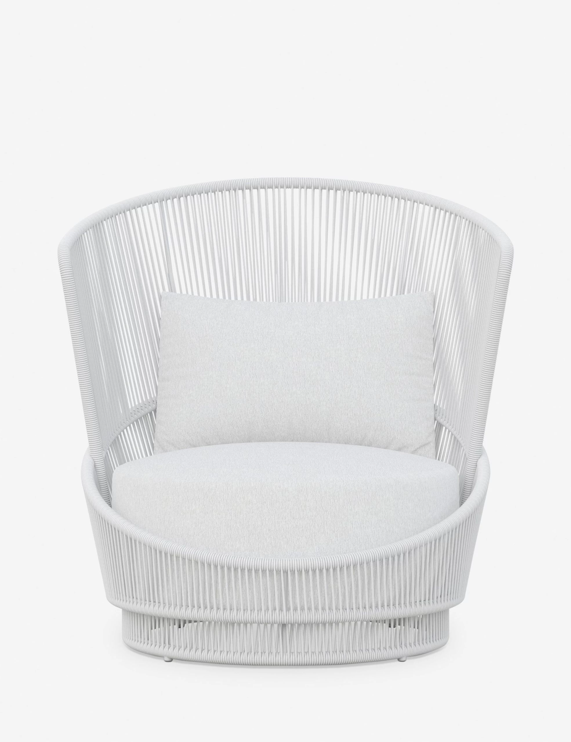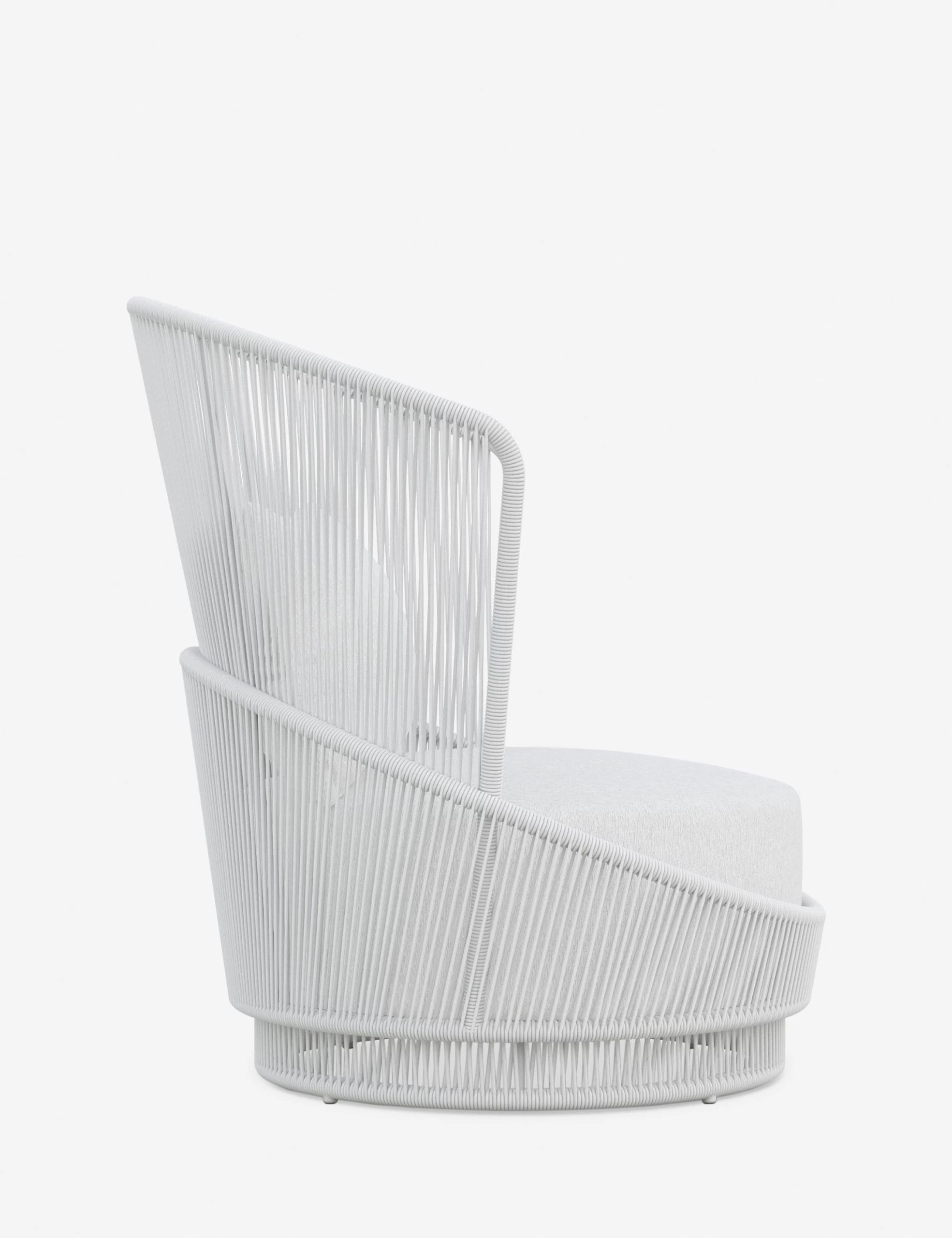 Elevate your indoor-outdoor style with the Portillo chair. The aluminum frame curves into a tall-backed silhouette—strung with all-weather rope and fitted with a deep, performance cushion that removes for easy care. A swivel base brings a smooth, dynamic action to this indoor/outdoor lounge chair.