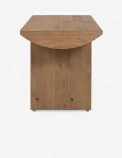Casting a clean, cut silhouette, this dining bench design is softened by a curved-bottom tabletop sturdily set on two flat, solid legs. Clad in a beautiful oak veneer for natural grain appeal, this dining table bench pairs perfect with our Remwald Dining Table or can be styled as an extra surface for seating and decor in a dynamic space.