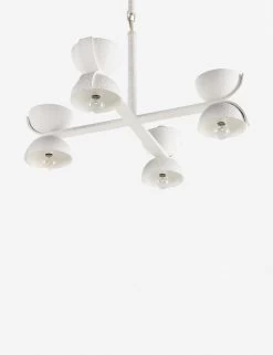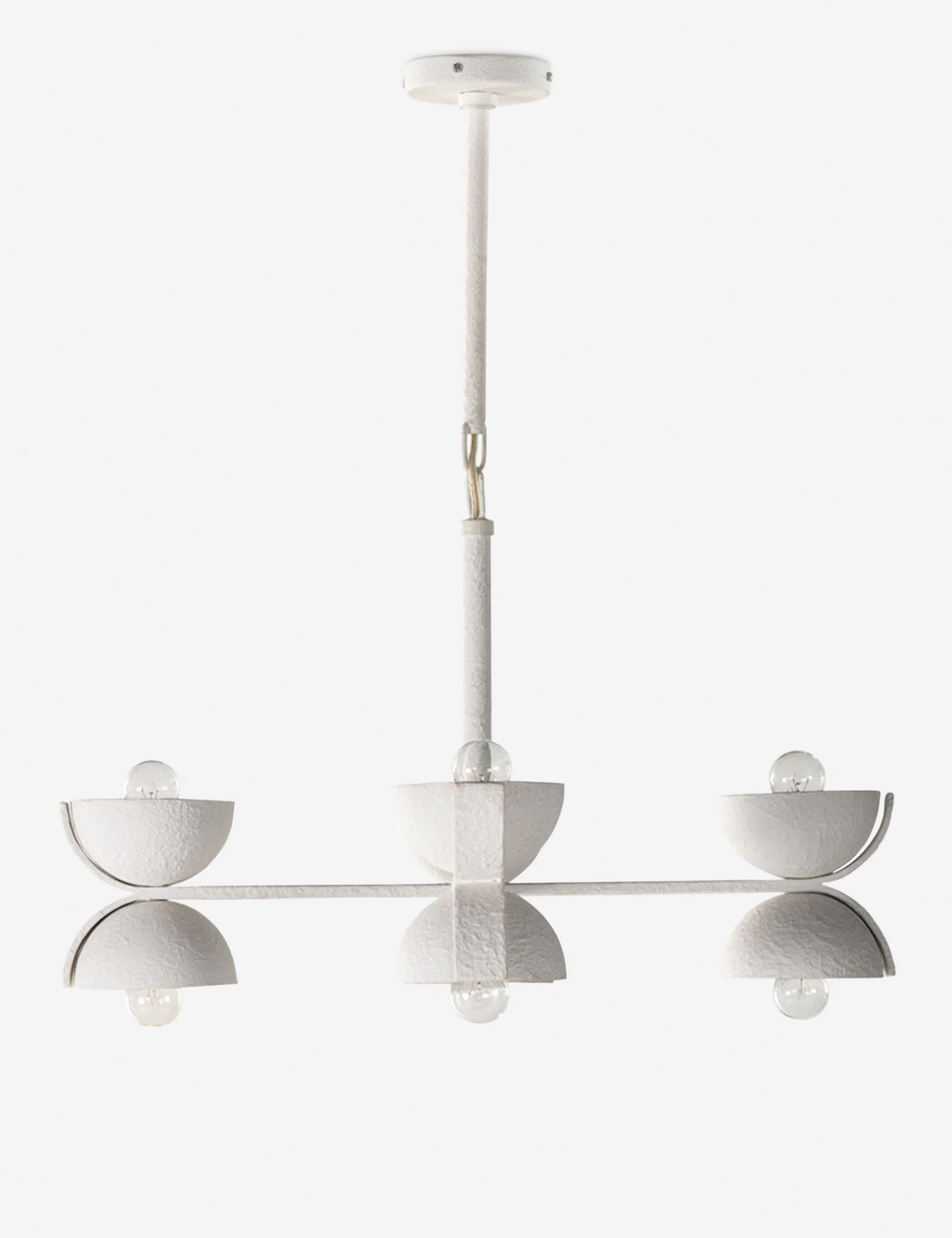 The Ricardo lighting collection brings form to texture with a hand-molded look and plaster-like finish. This chandelier offers brilliant illumination with eight dome shades arranged to pour light up and down. Create a timeless statement over your dining or coffee table with this unique chandelier light.