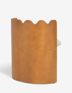 Wavy lines give this accent chair a distinctive profile to match its barrel back, timeless woodwork quality, and sleek upholstered seat. We love this small chair as an accent in a living room or bedroom or as a vanity stool. This piece is from our exclusive Sarah Sherman Samuel collaboration and features all the trademarks of her warm, edited style.