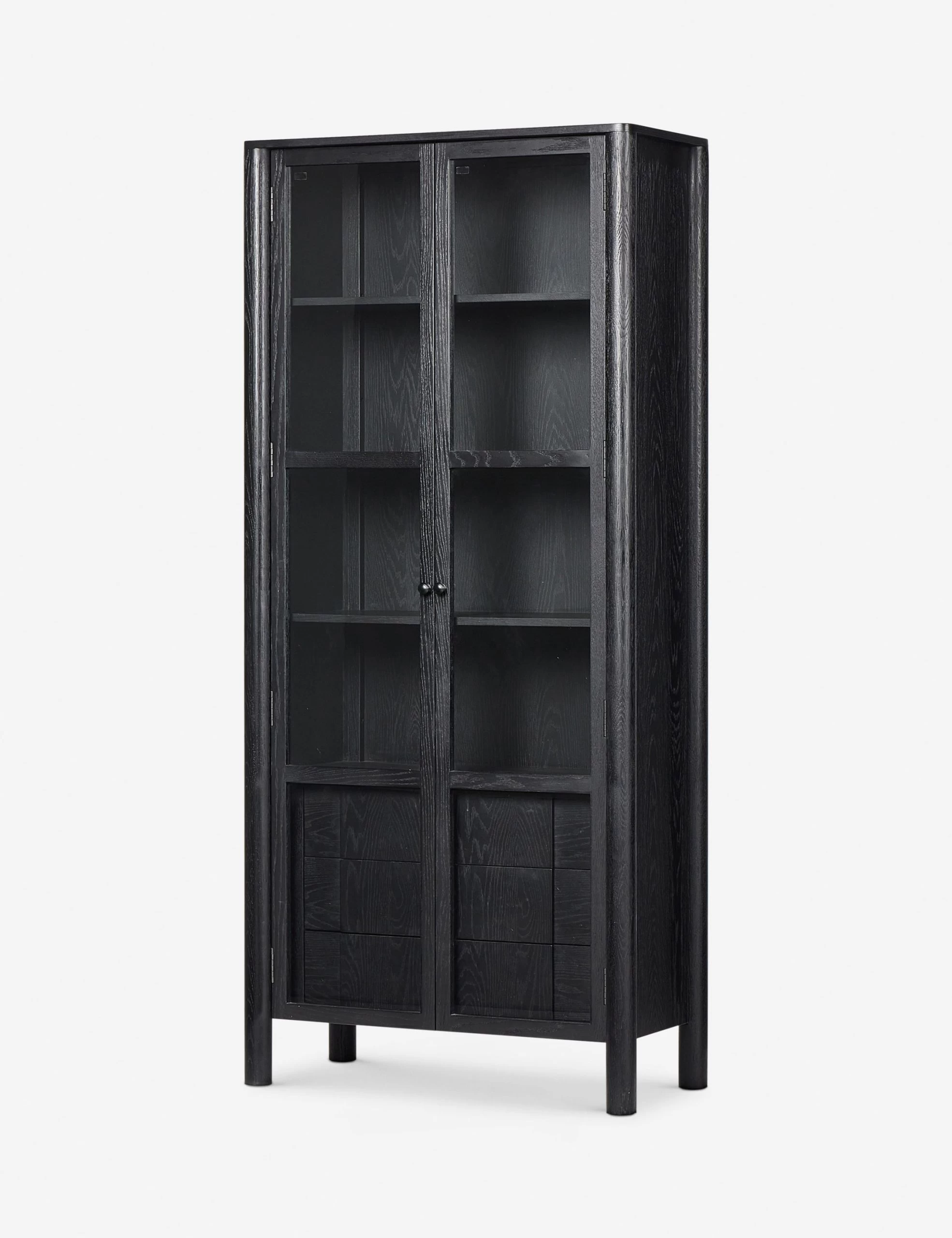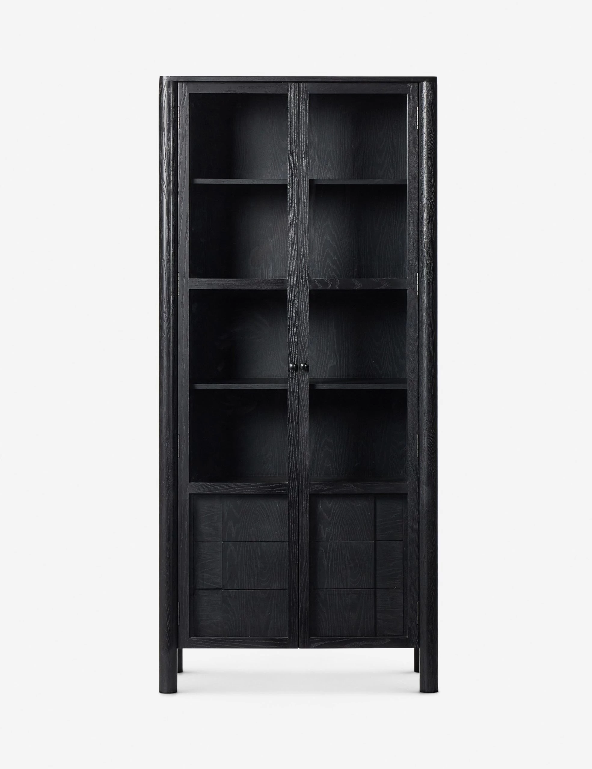 The Rossano cabinet brings beauty to storage with its stately oak frame. The glass-paneled doors showcase spacious shelving, perfect for transforming books, glassware, or favorite objects into a curated display with three interior drawers for additional storage below. We love the transitional style and versatility of this piece for hallways, living rooms, or dining areas.