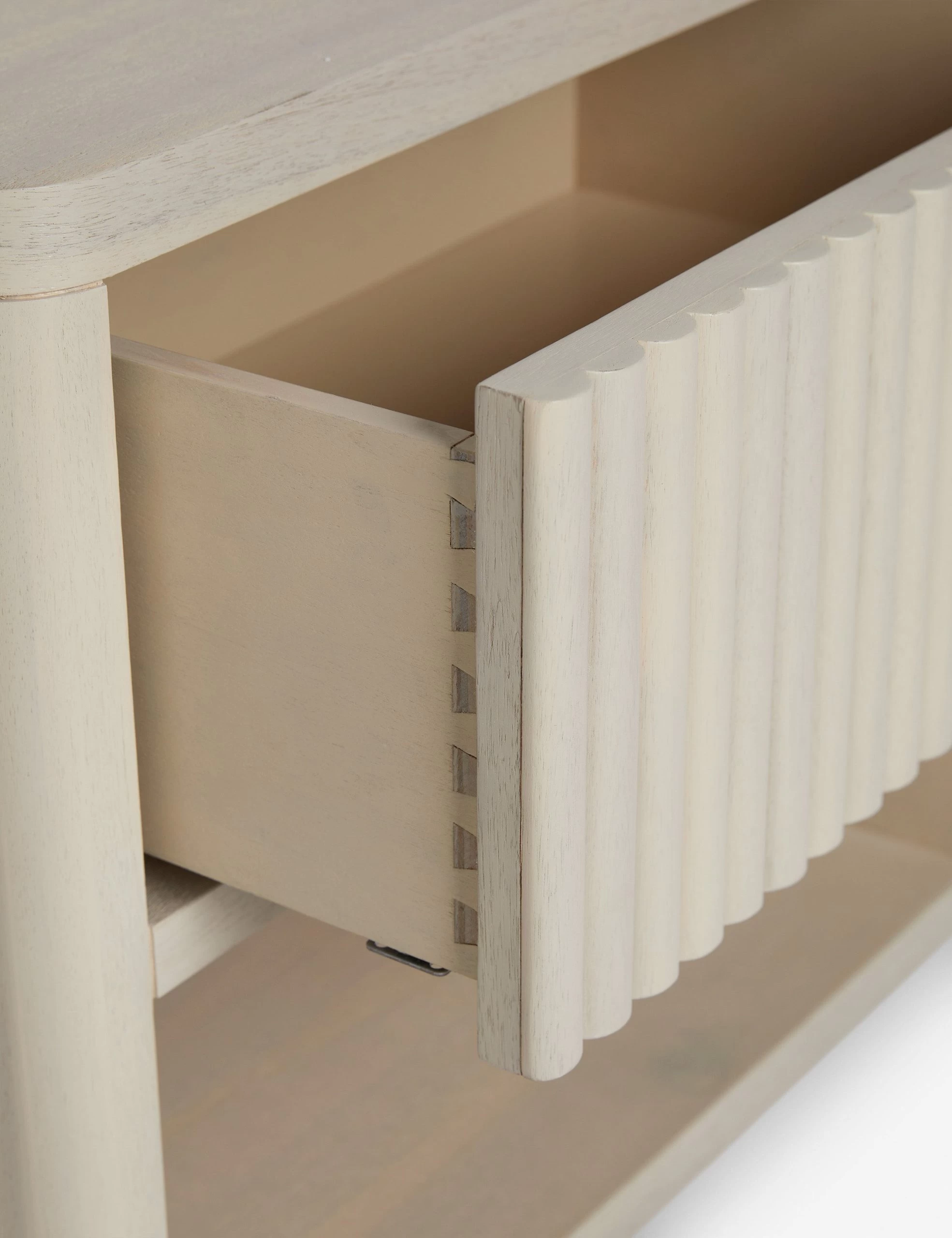 With its fluted front and light wood finish, the Rutherford nightstand brings vintage inspiration to a modern design. Its rounded lines, single drawer, and open shelf offer plentiful storage with a soft yet grounding presence bedside. We love this acacia wood night table for a clean, tonal look with minimalist appeal.