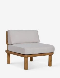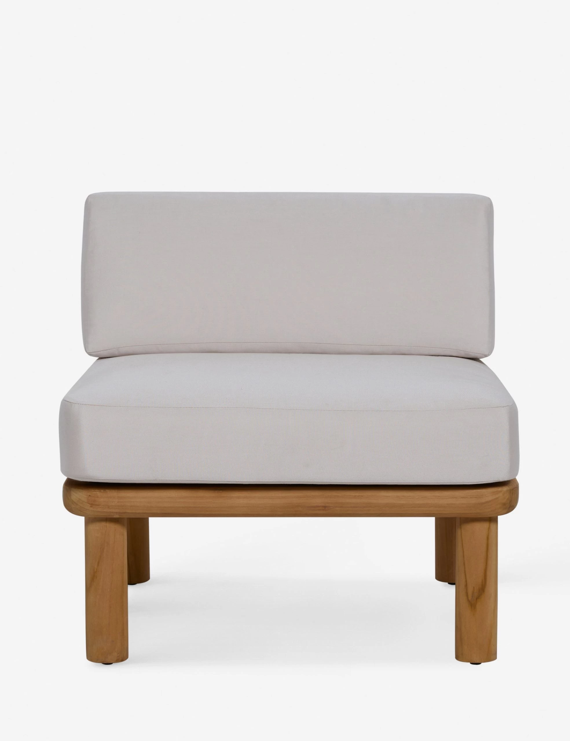 Rounded lines and a pared-down frame bring a grounded, rustic feel to the Ryann accent chair. The teak frame is sealed with a clear top coat and fitted with white cushions upholstered with solution-dyed acrylic fibers for lasting elegance indoors or out. This chair is set for laid-back hangs in a shady fresh-air lounge.