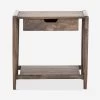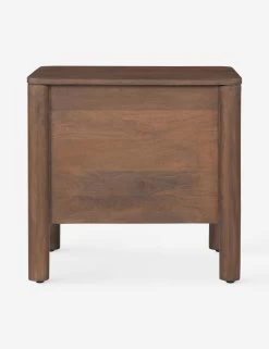 The Samantha nightstand grounds modern appeal in natural grain warmth and charm. The clean-lined frame is adorned with scalloped detailing and brass-finished hardware, setting off its profile with a unique touch. This small nightstand features two drawers, offering plentiful storage you can style bedside any sized bed.