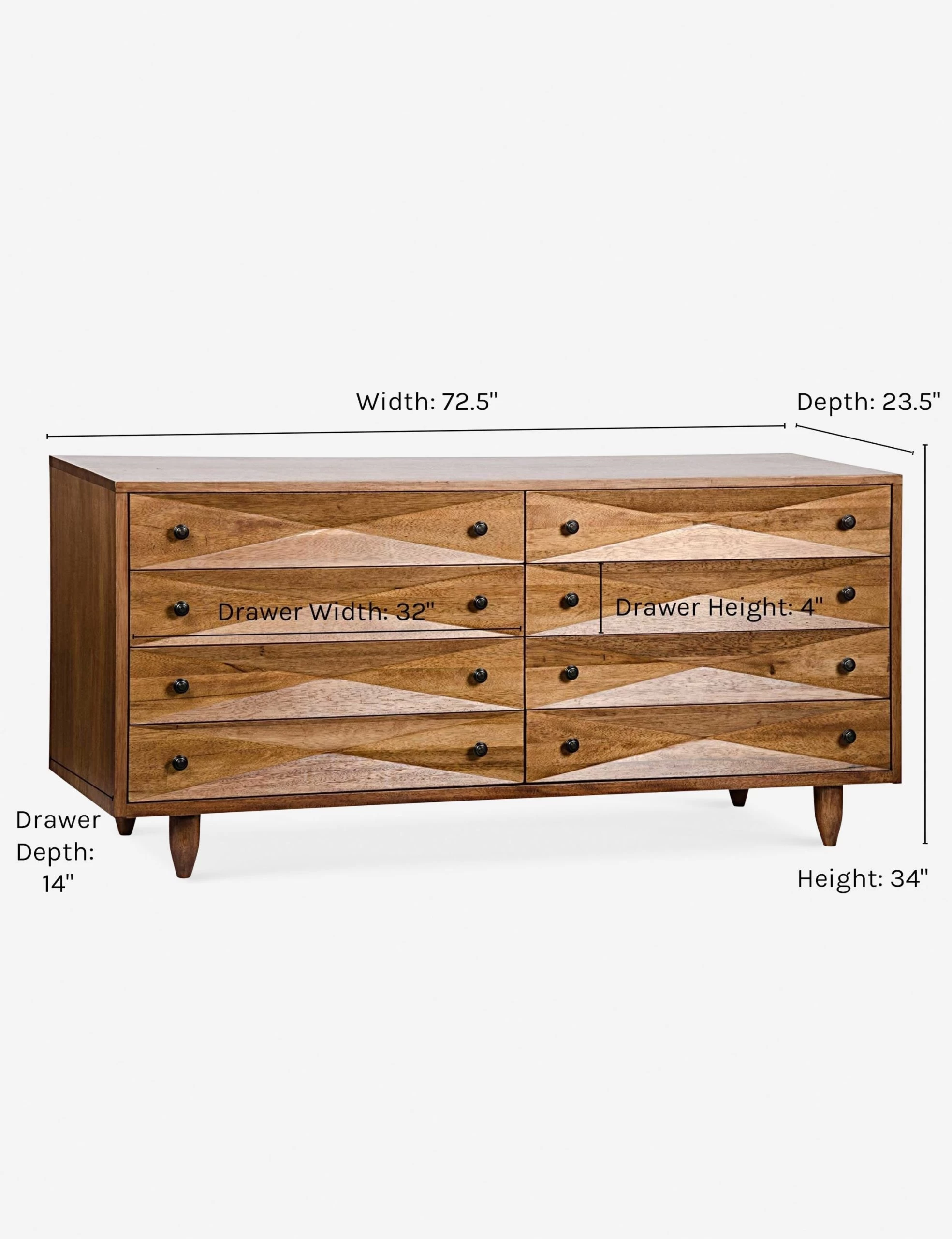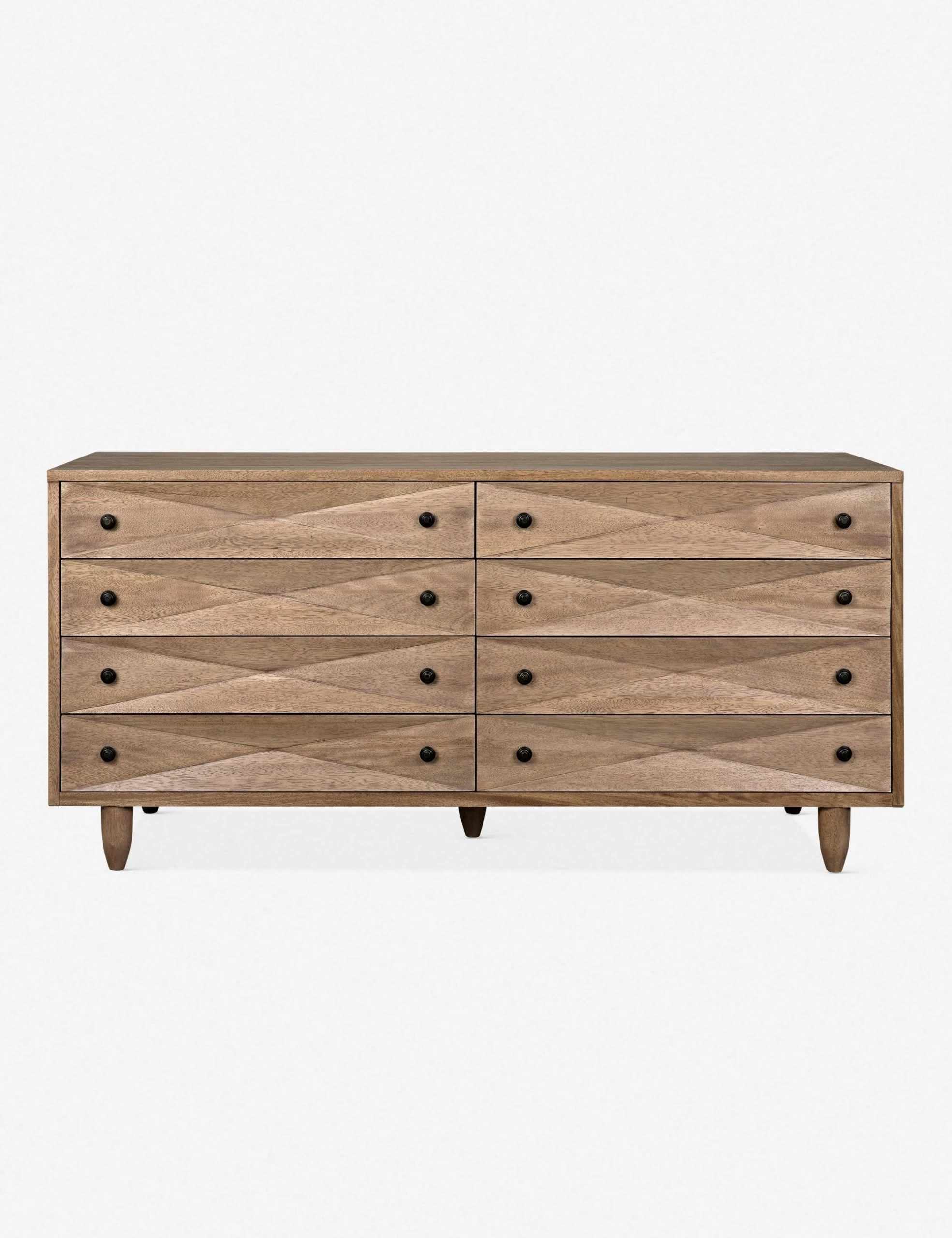 Designed with dimensional diamond-detailed drawers, this double chest is a gorgeous addition to any bedroom. Finished with simple round drawer pulls, we love how the beautiful wood grains stand out on this ultra-versatile storage piece!