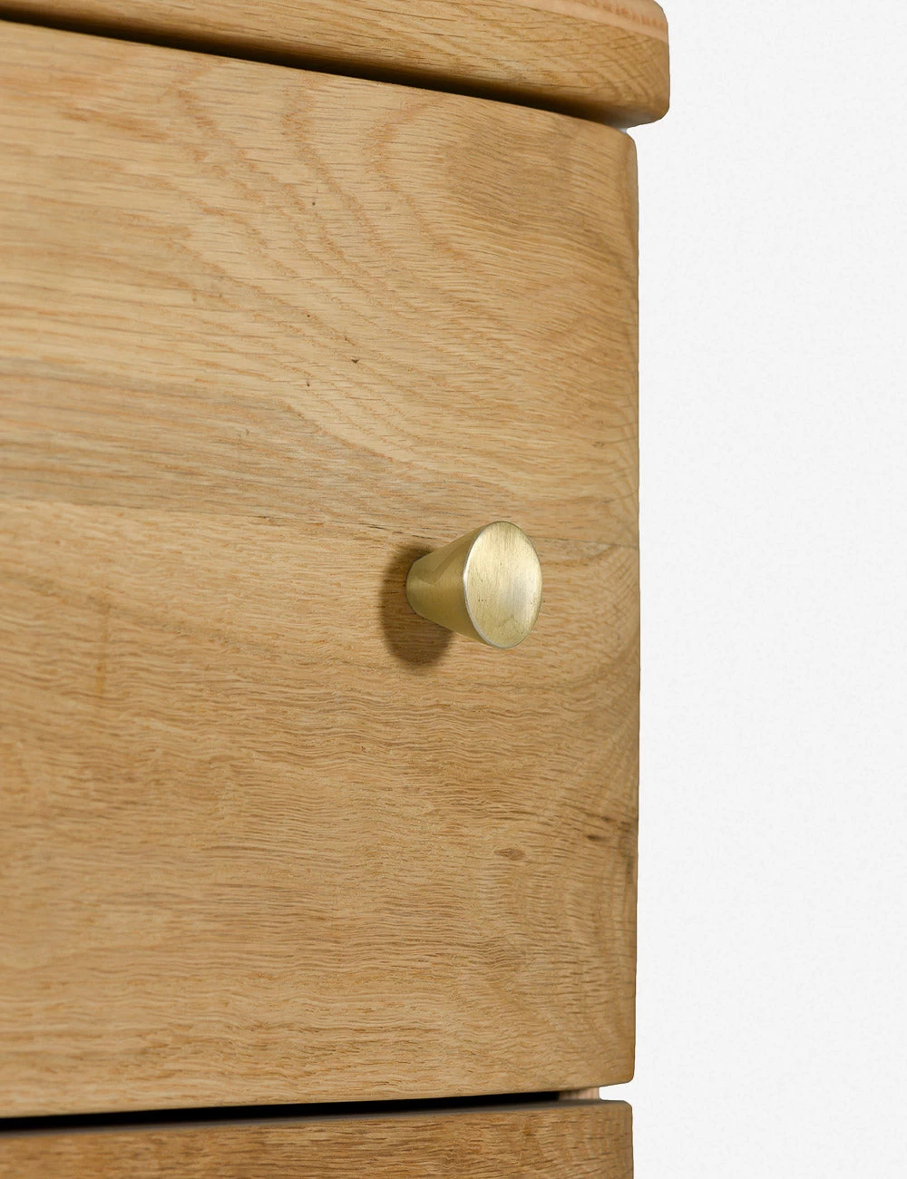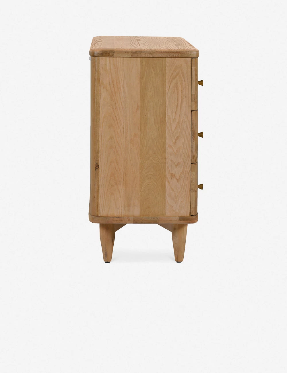 The soft, sculpted lines of this FSC-certified oak dresser complement its natural wood grain texture. Set on tapered legs, this dresser features six spacious drawers and an ample surface where you can prop a mirror or style accessories—and its metal pulls offer a distinctive touch.