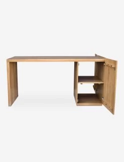 Fashioned from solid oak planks, this desk is versatile, refined, and grounded in natural grain appeal. The waterfall silhouette offers a crisp minimalist look that can bring organic warmth to any home office or study.