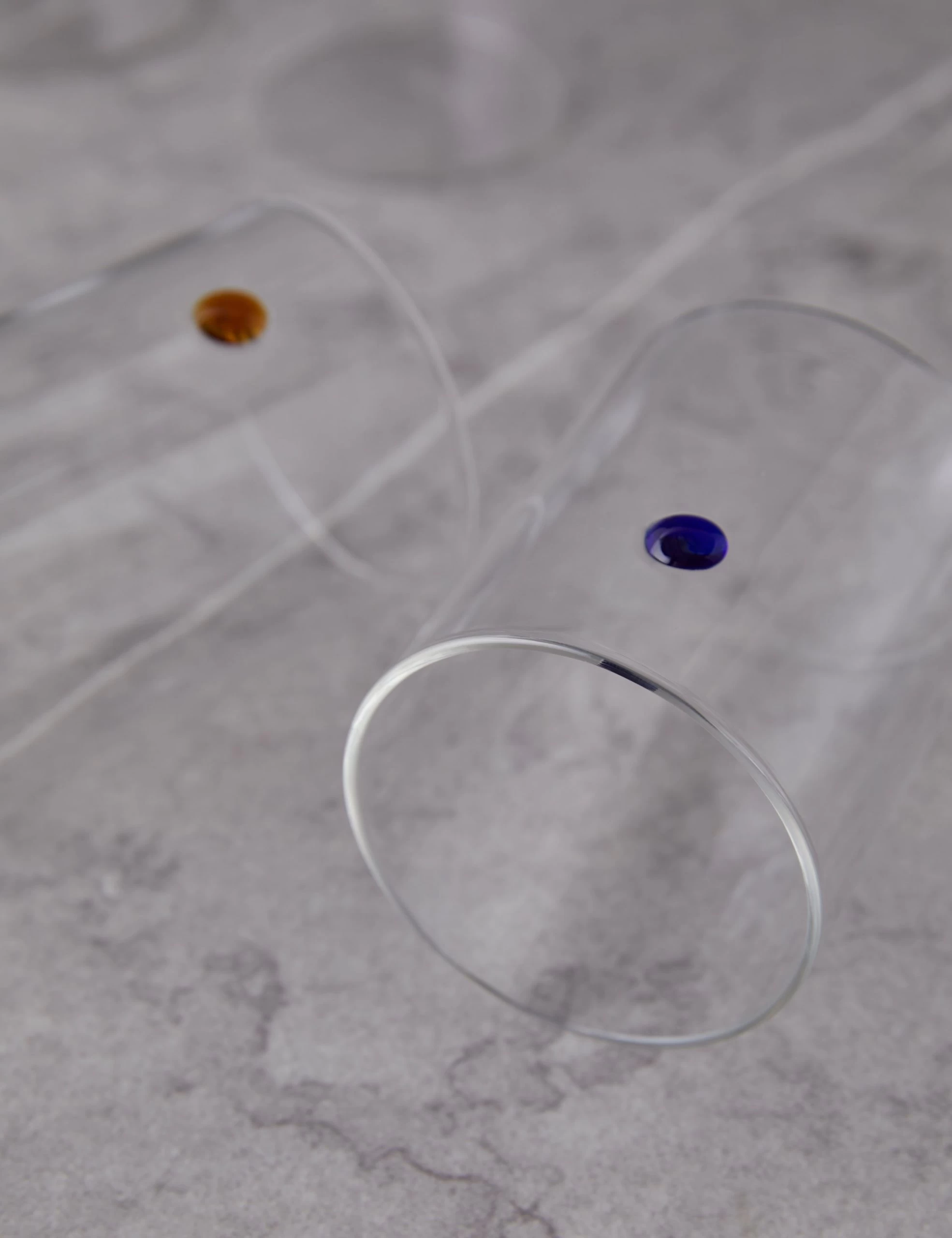 A sleek, simple drinking glass finished with a touch of color. These handmade tumblers offer bright and effortless appeal to any glassware collection. Plus, assorted colors make each cup unique.